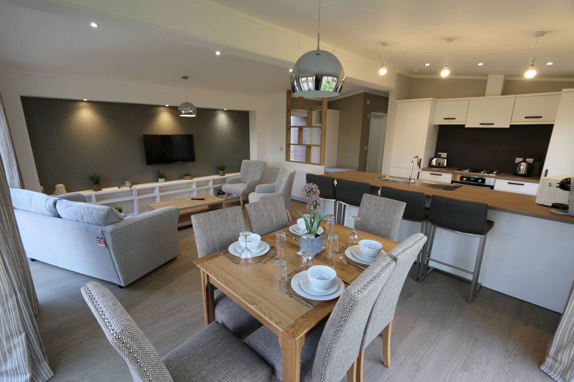 Stunning lodge three bedrooms and two bathrooms with open planing living area perfect for family dinner or relaxing