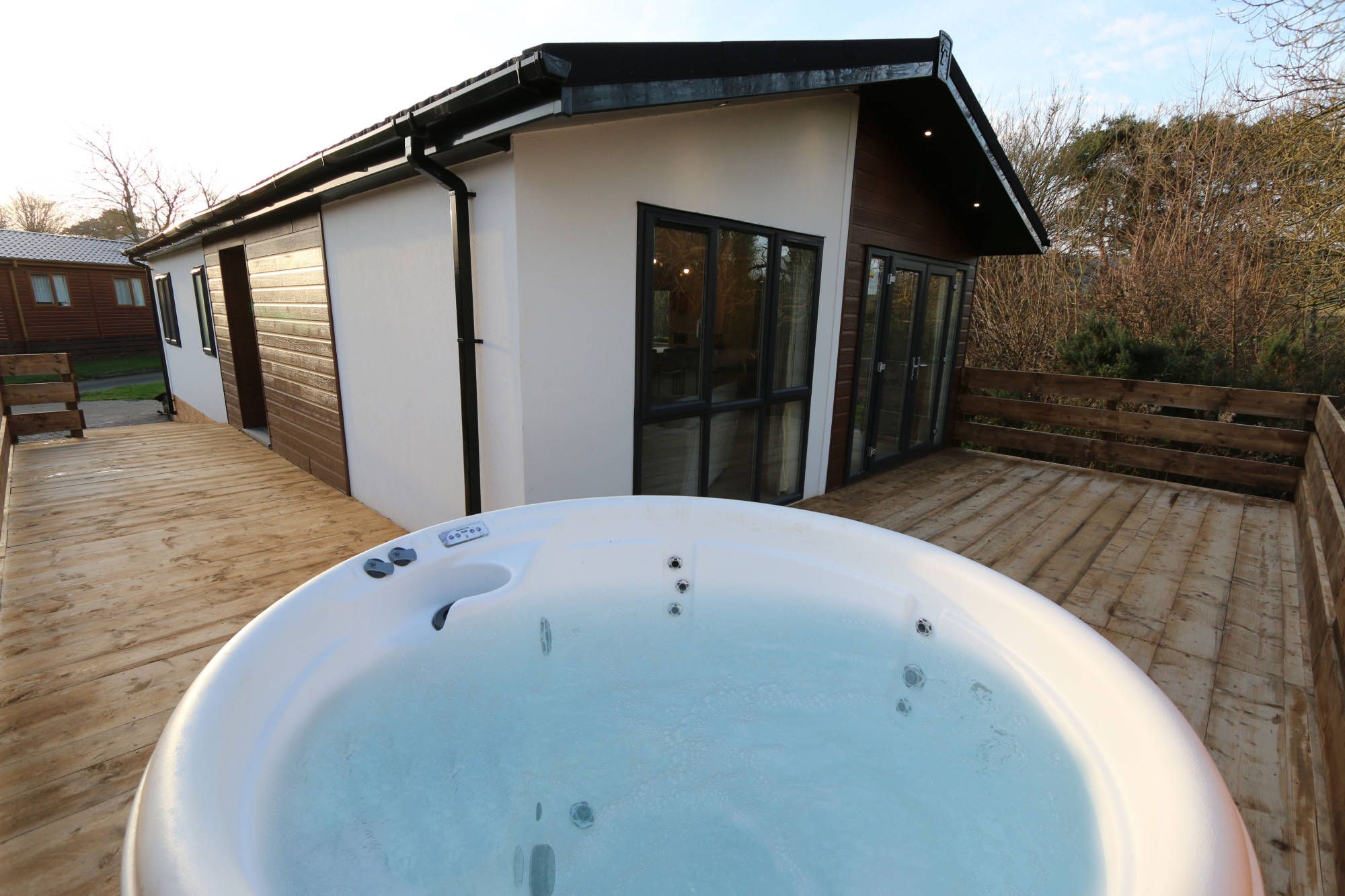 Stunning lodge with two bedroom, bathroom and outdoor decking area complete with hot tub