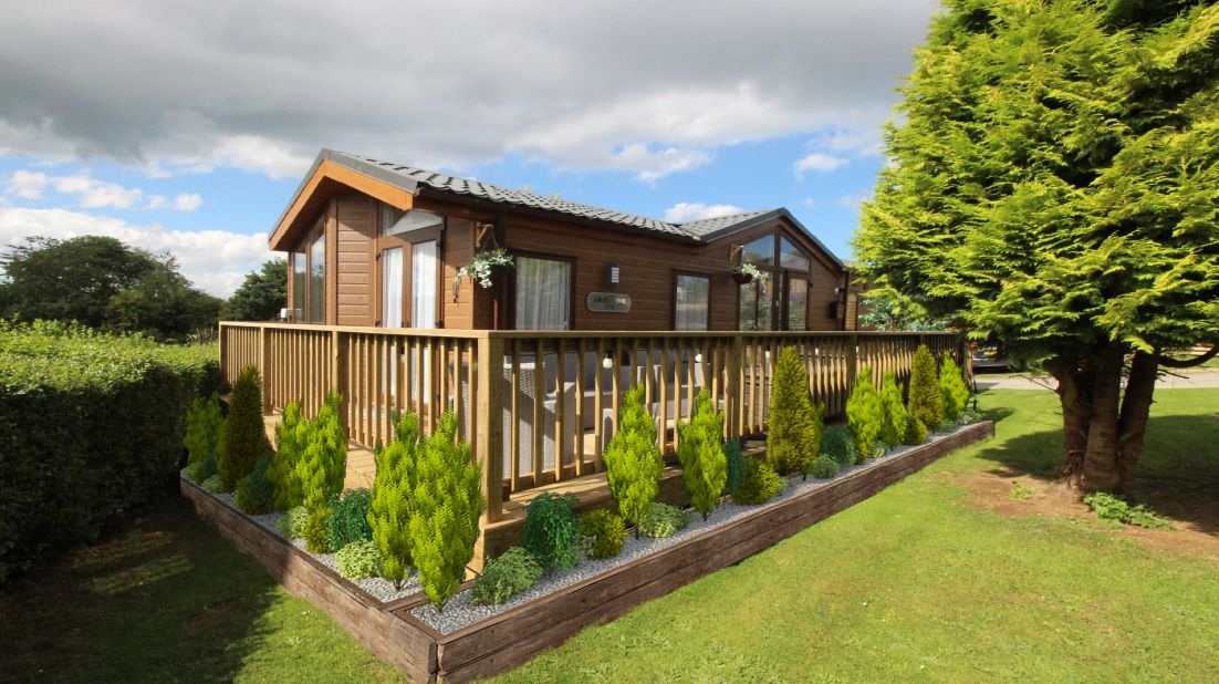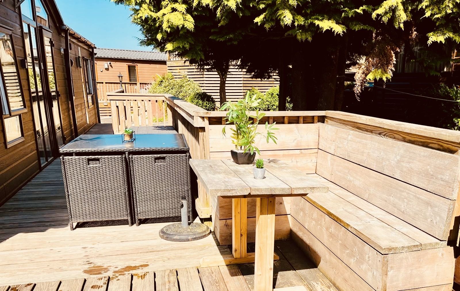 Stunning lodge with two bedroom, bathroom and outdoor decking area complete with hot tub