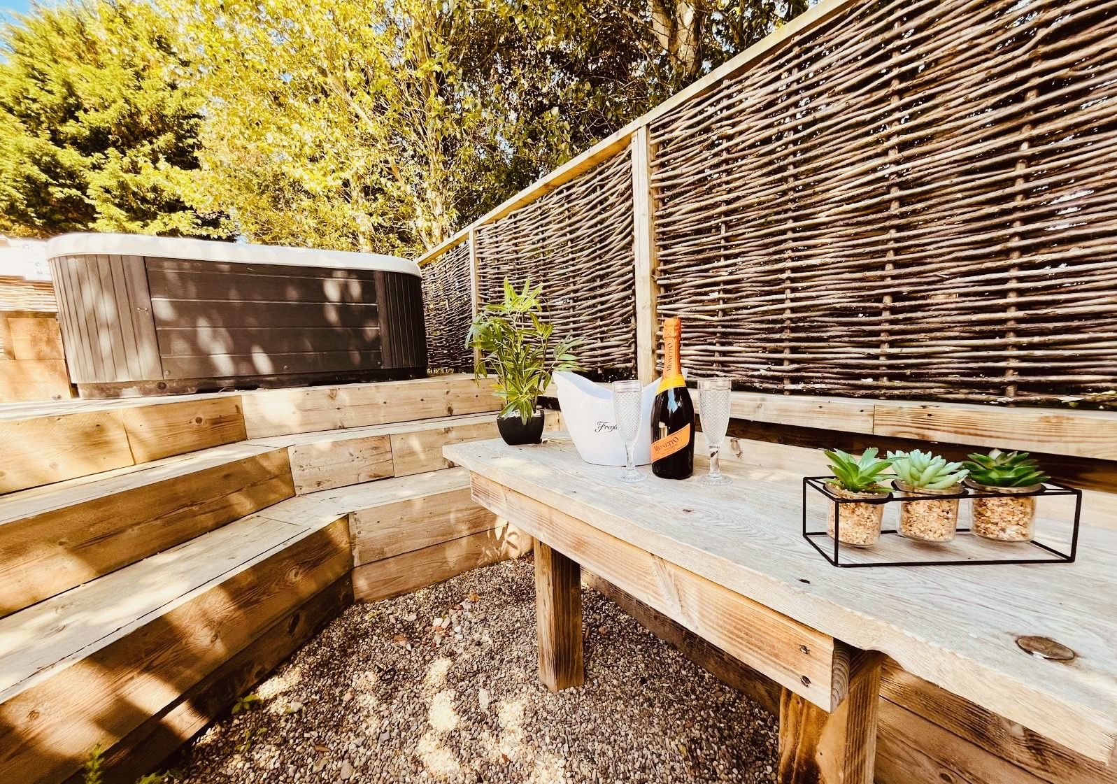 Stunning lodge with two bedroom, bathroom and outdoor decking area complete with hot tub