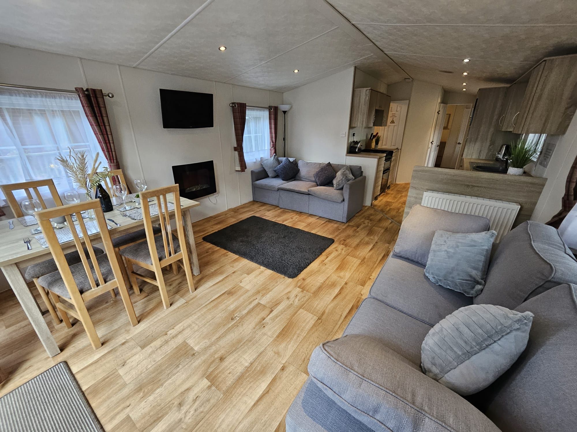 Stunning lodge three bedrooms and two bathrooms with open planing living area perfect for family dinner or relaxing