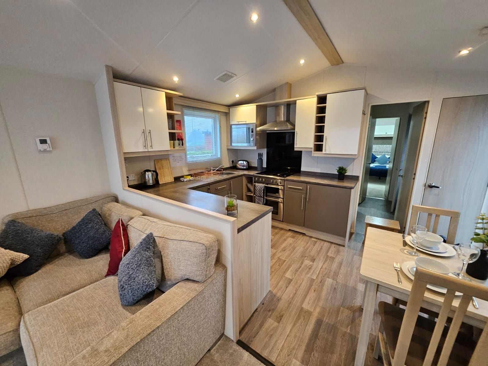 Accommodation on the park is a choice of 2 or 3 bedroom holiday homes. All come with the added bonus of an outdoor hot tub. The lodge 34 is a good choice with a contemporary interior, one double and one twin bedroom.