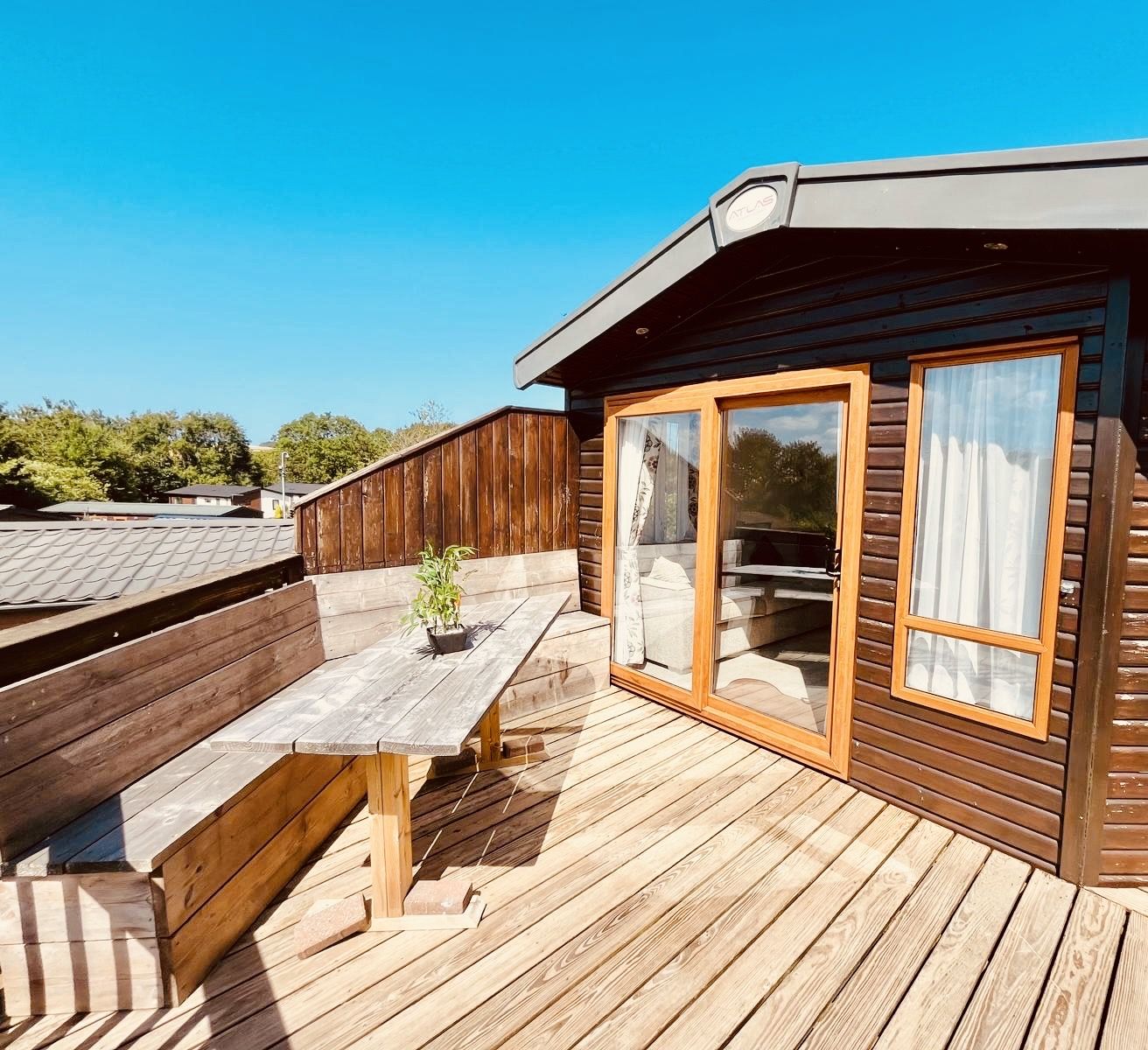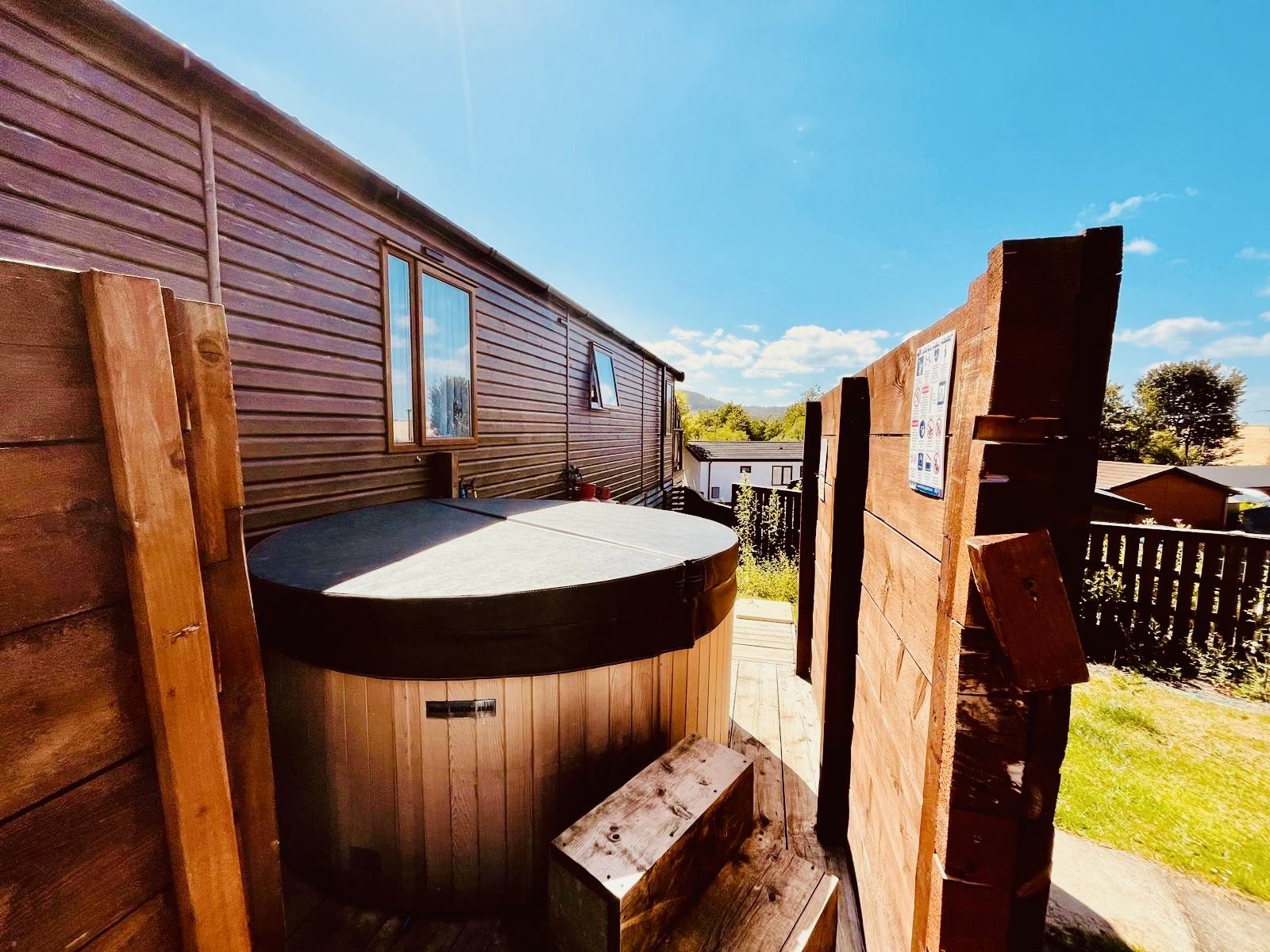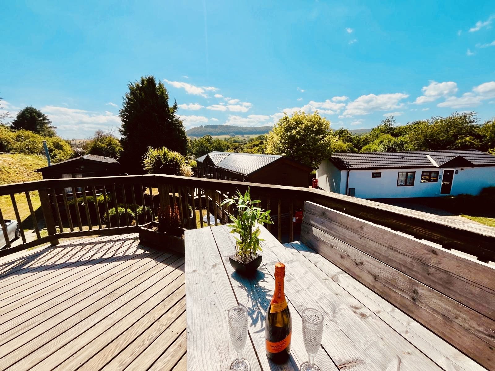 Stunning lodge with two bedroom, bathroom and outdoor decking area complete with hot tub