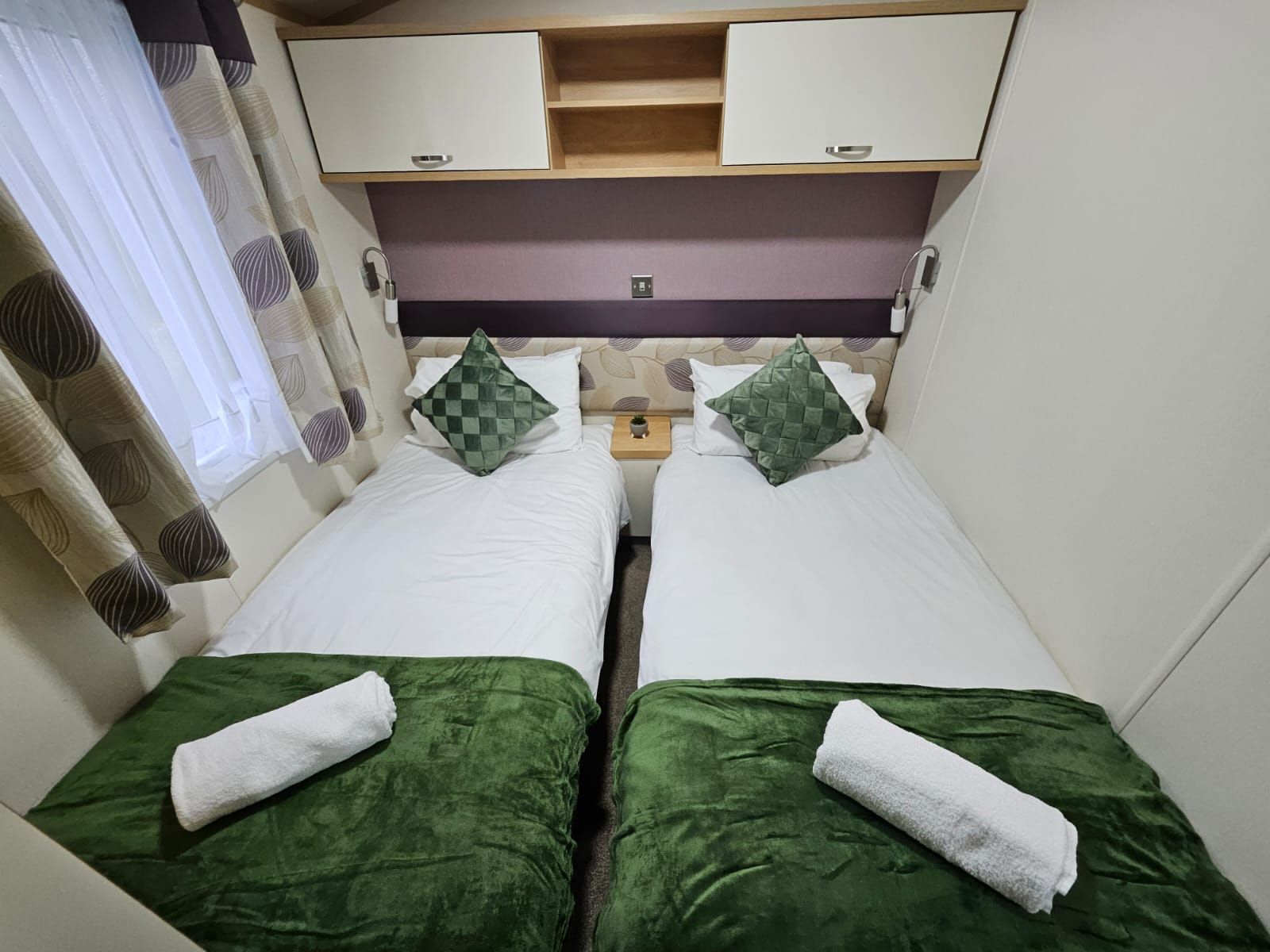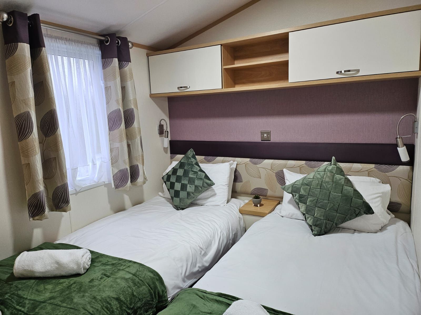The lodge is a good choice with a contemporary interior, one double and one twin bedroom.