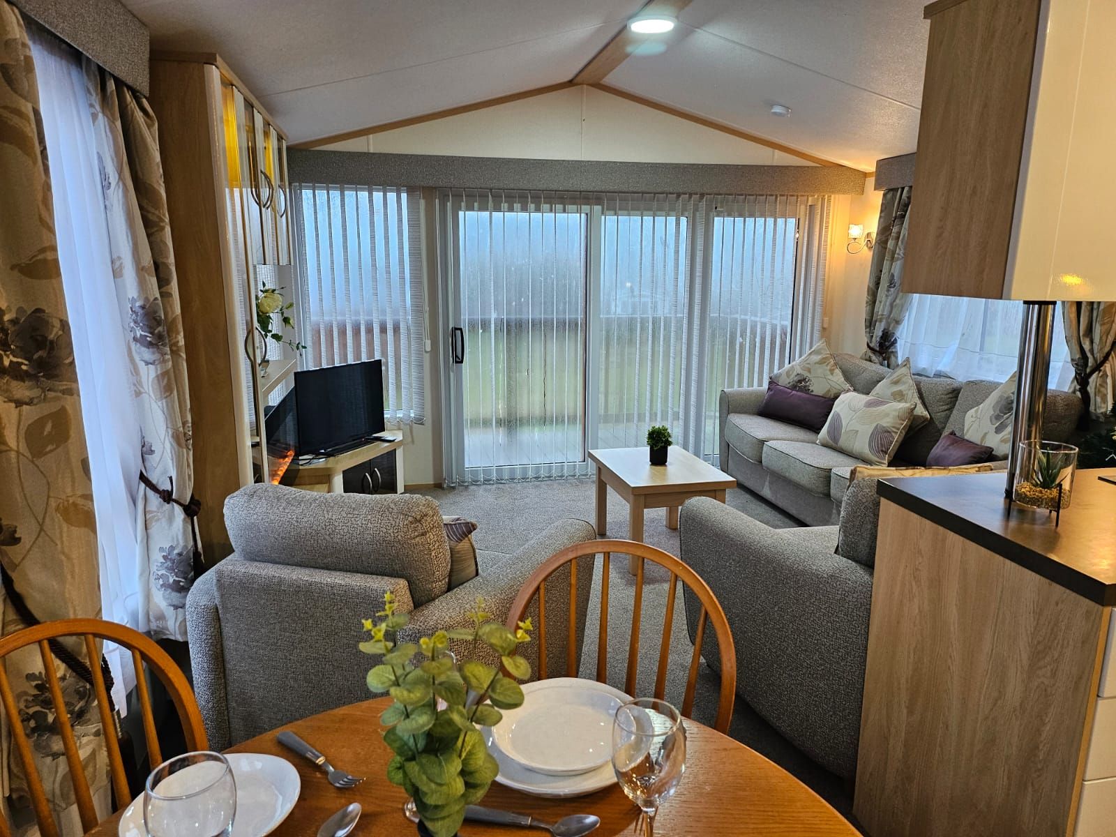 Stunning lodge three bedrooms and two bathrooms with open planing living area perfect for family dinner or relaxing