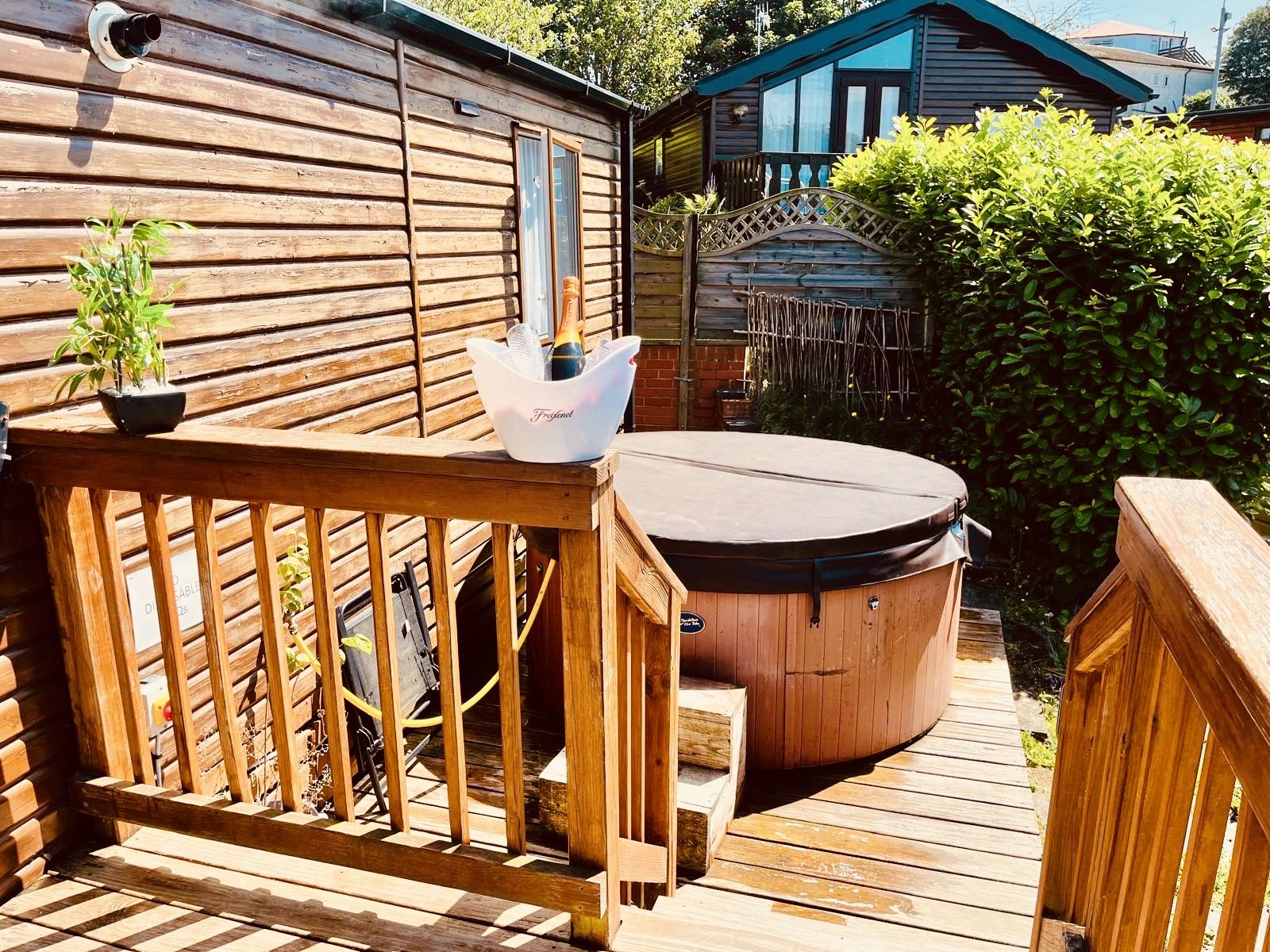 Stunning lodge with two bedroom, bathroom and outdoor decking area complete with hot tub