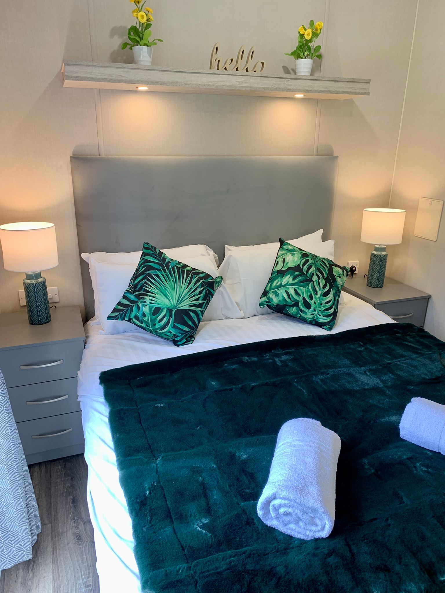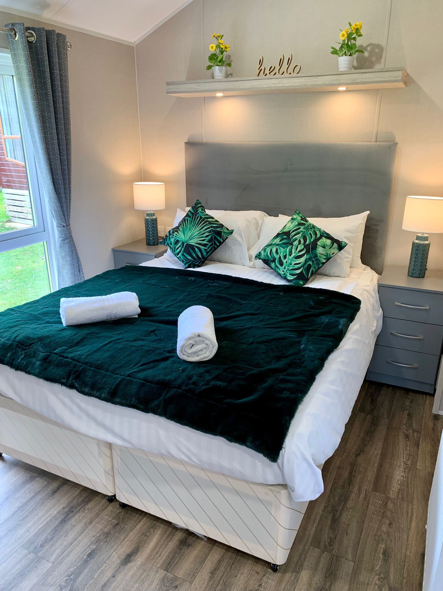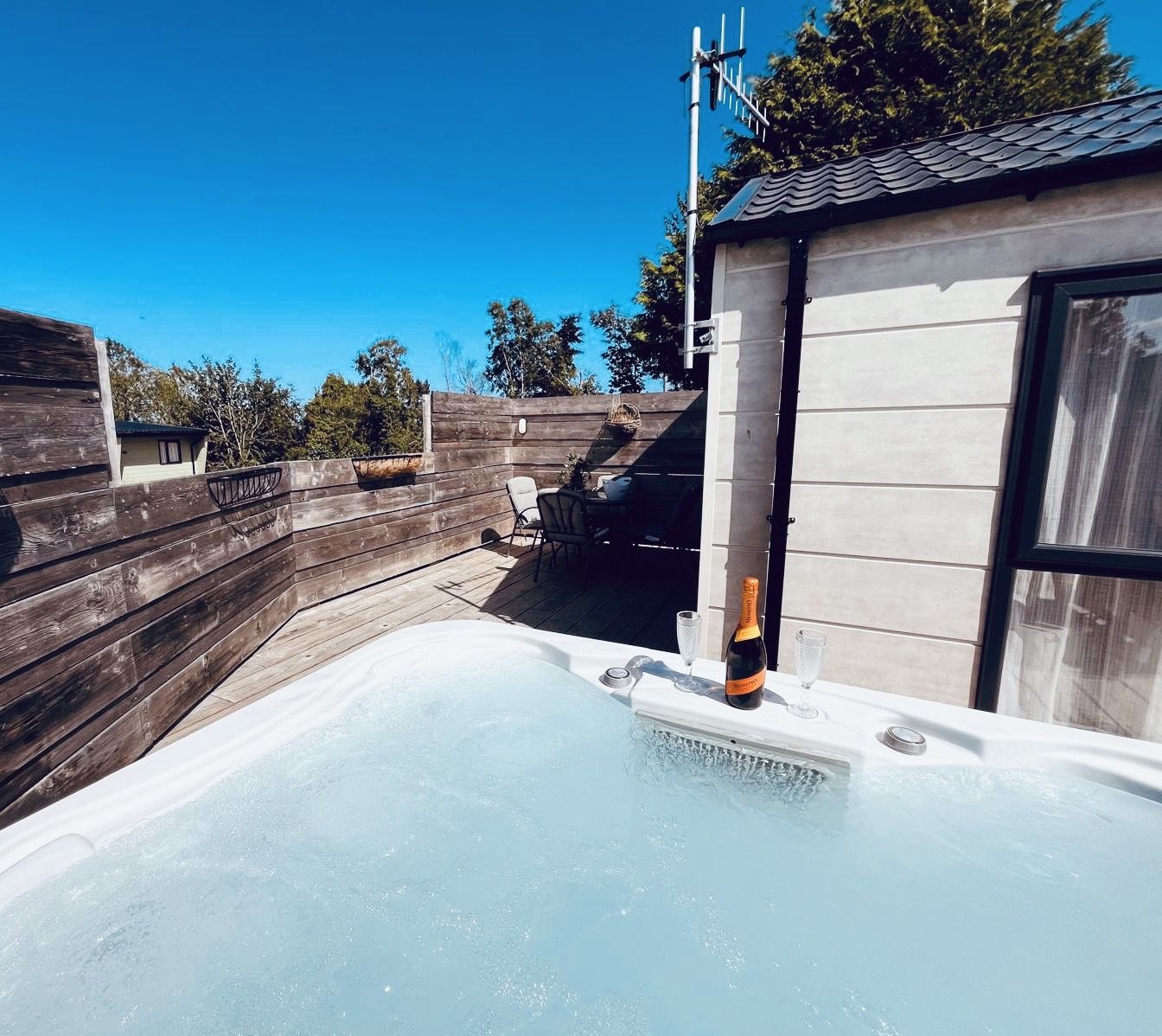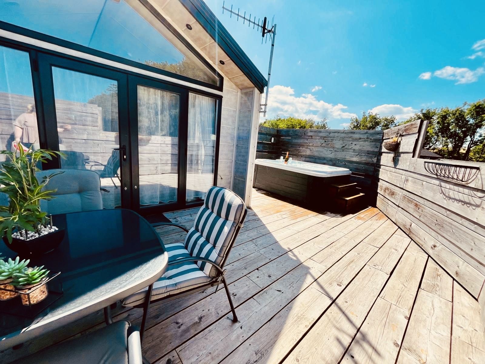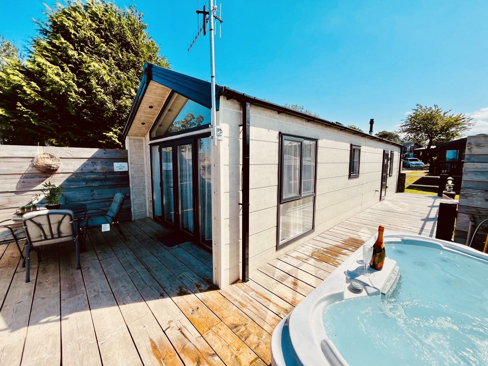 Stunning lodge with two bedroom, bathroom and outdoor decking area complete with hot tub