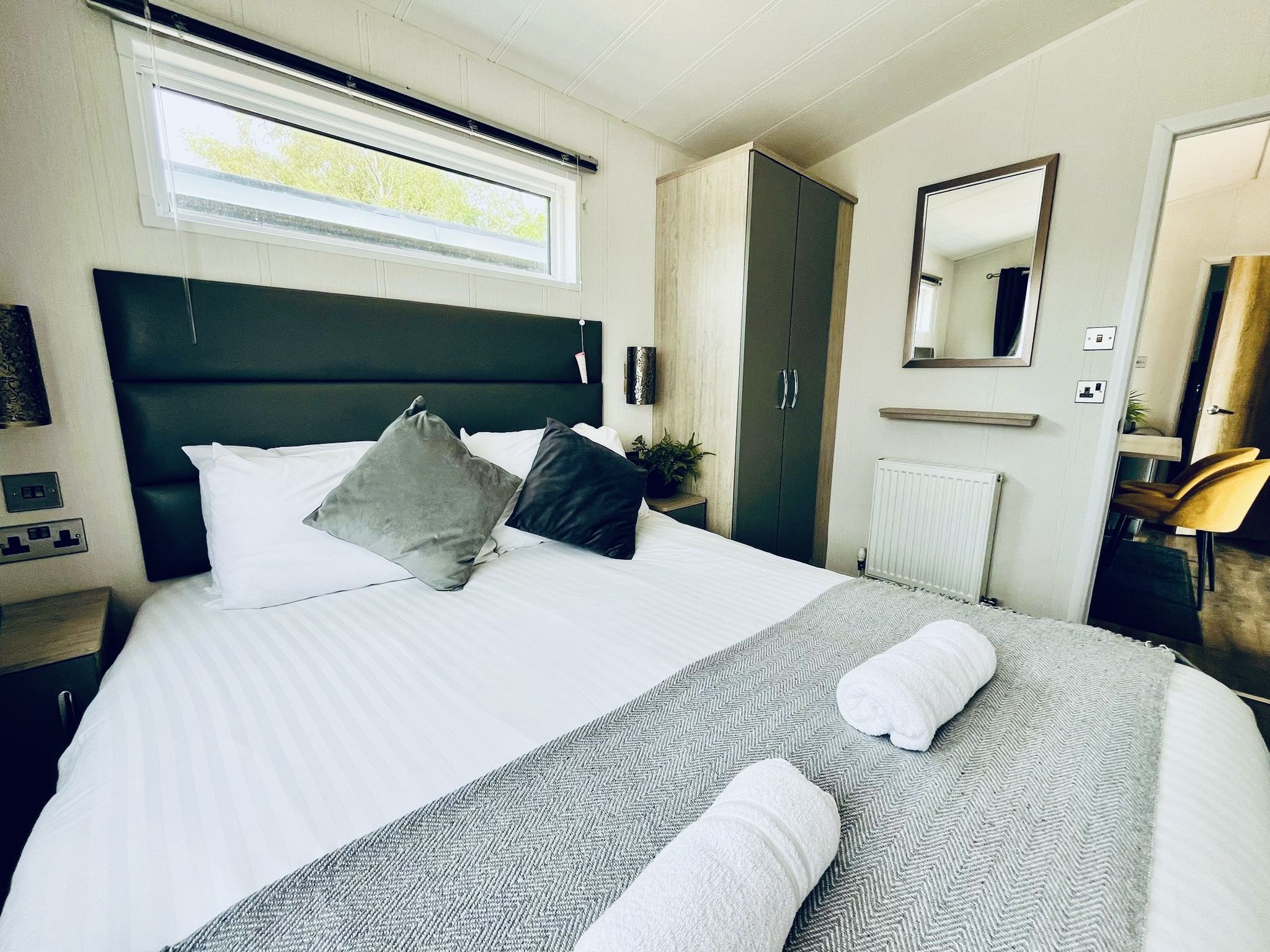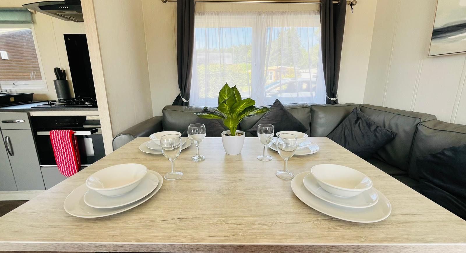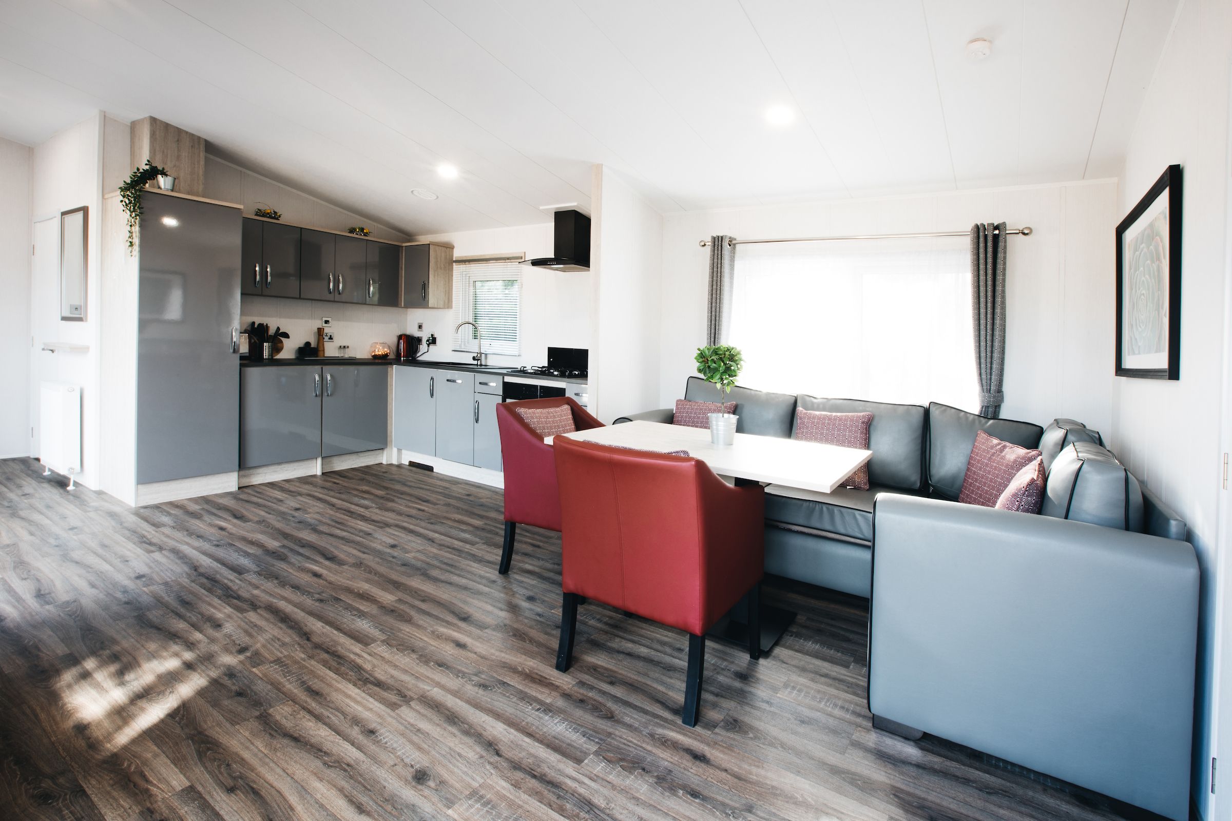 A bright and spacious pet friendly lodge with a generous central lounge layout and large double doors allowing natural light to give the lodge a bright feel. The large double en-suite bedroom, double bedroom and bunk bedroom makes this lodge a family favourite. Most notable is the cleverly designed living, dining and kitchen layout, with large double doors leading to a spacious private decking area with your own hot tub.