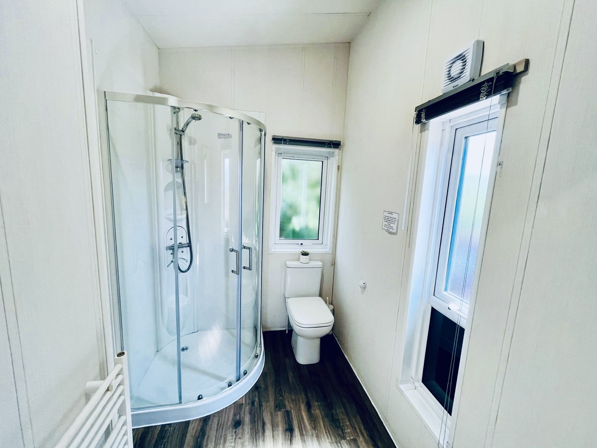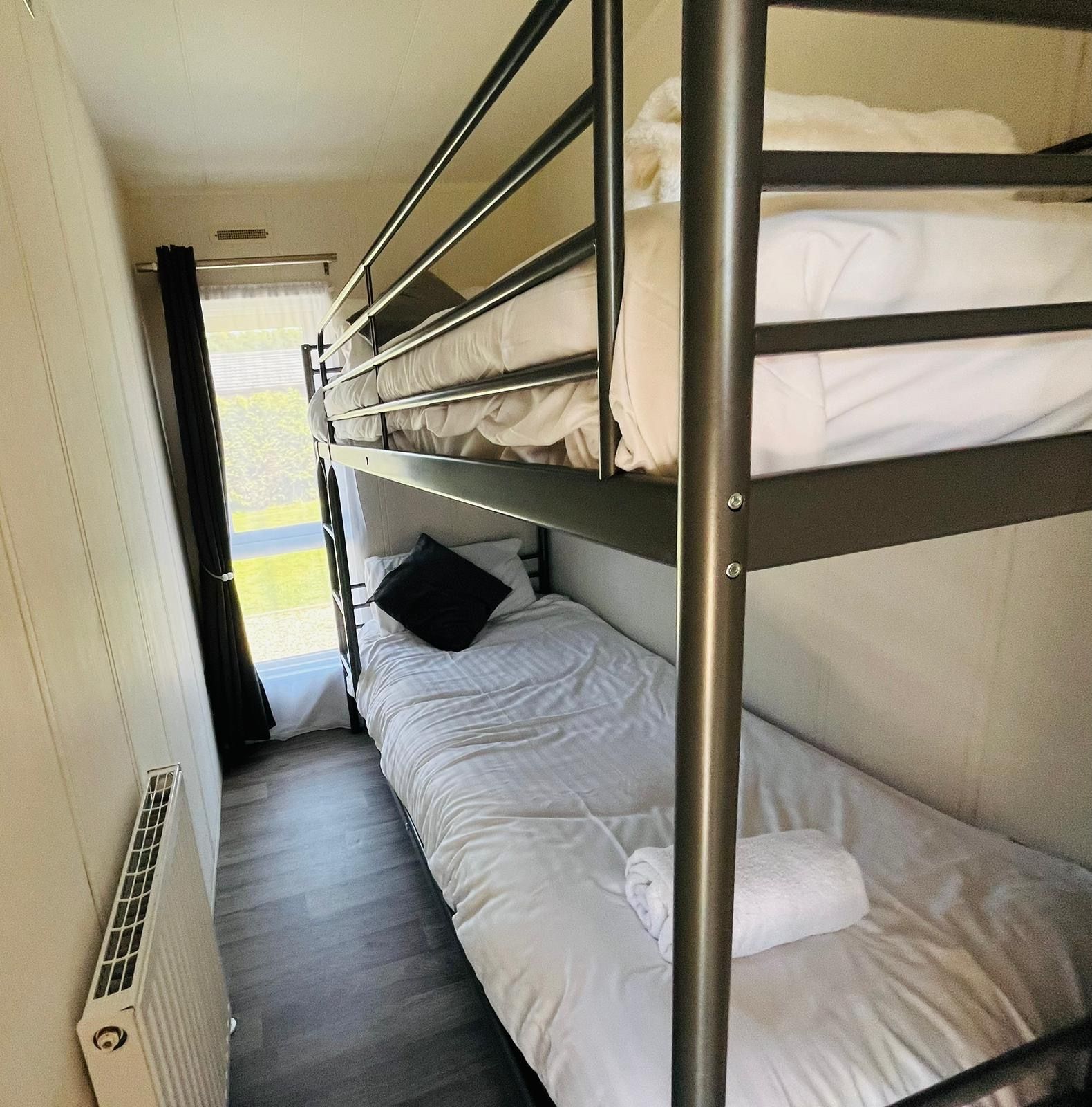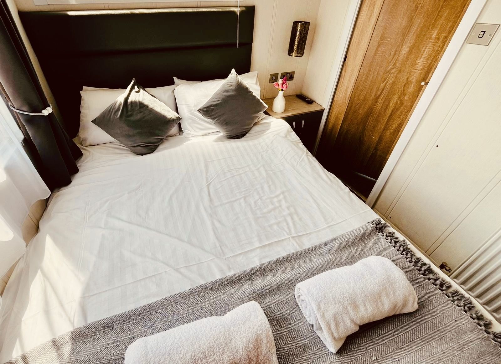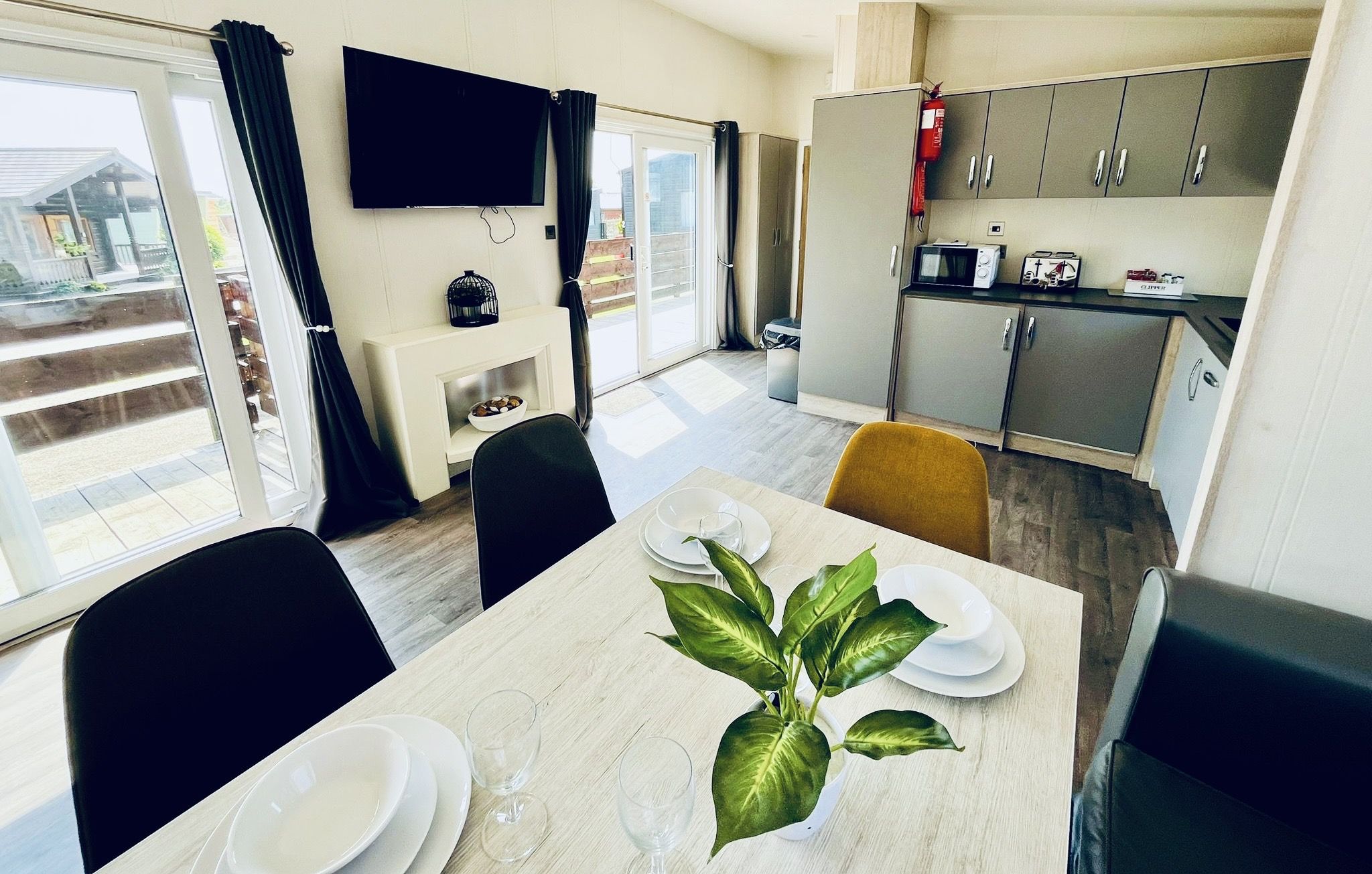 A bright and spacious pet friendly lodge with a generous central lounge layout and large double doors allowing natural light to give the lodge a bright feel. The large double en-suite bedroom, double bedroom and bunk bedroom makes this lodge a family favourite. Most notable is the cleverly designed living, dining and kitchen layout, with large double doors leading to a spacious private decking area with your own hot tub.