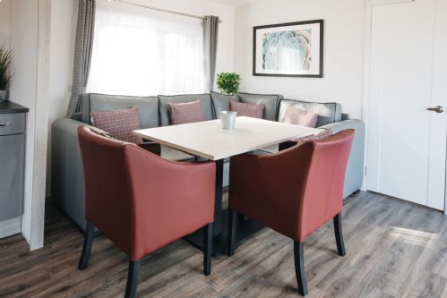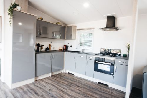 A bright and spacious pet friendly lodge with a generous central lounge layout and large double doors allowing natural light to give the lod...
