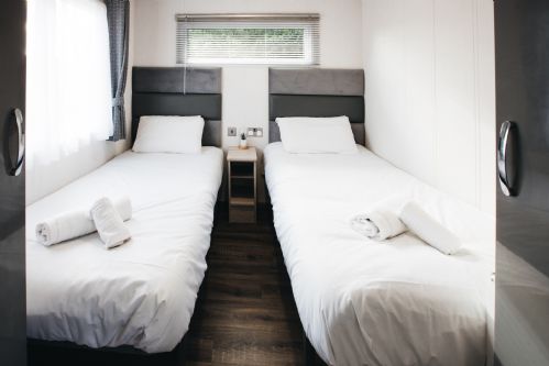 Larger than the standard 2 bedroom Liv Lodge, a beautifully designed pet-friendly lodge boasts a unique central lounge layout and large double doors that flood the interior with natural light, creating a bright and inviting atmosphere. The lodge features a large double bedroom, a twin bedroom and 2 bathrooms, making it a perfect choice for families. One of the standout features is the cleverly designed open-plan living, dining, and kitchen area, complete with large double doors that lead to a private deck with a relaxing hot tub.