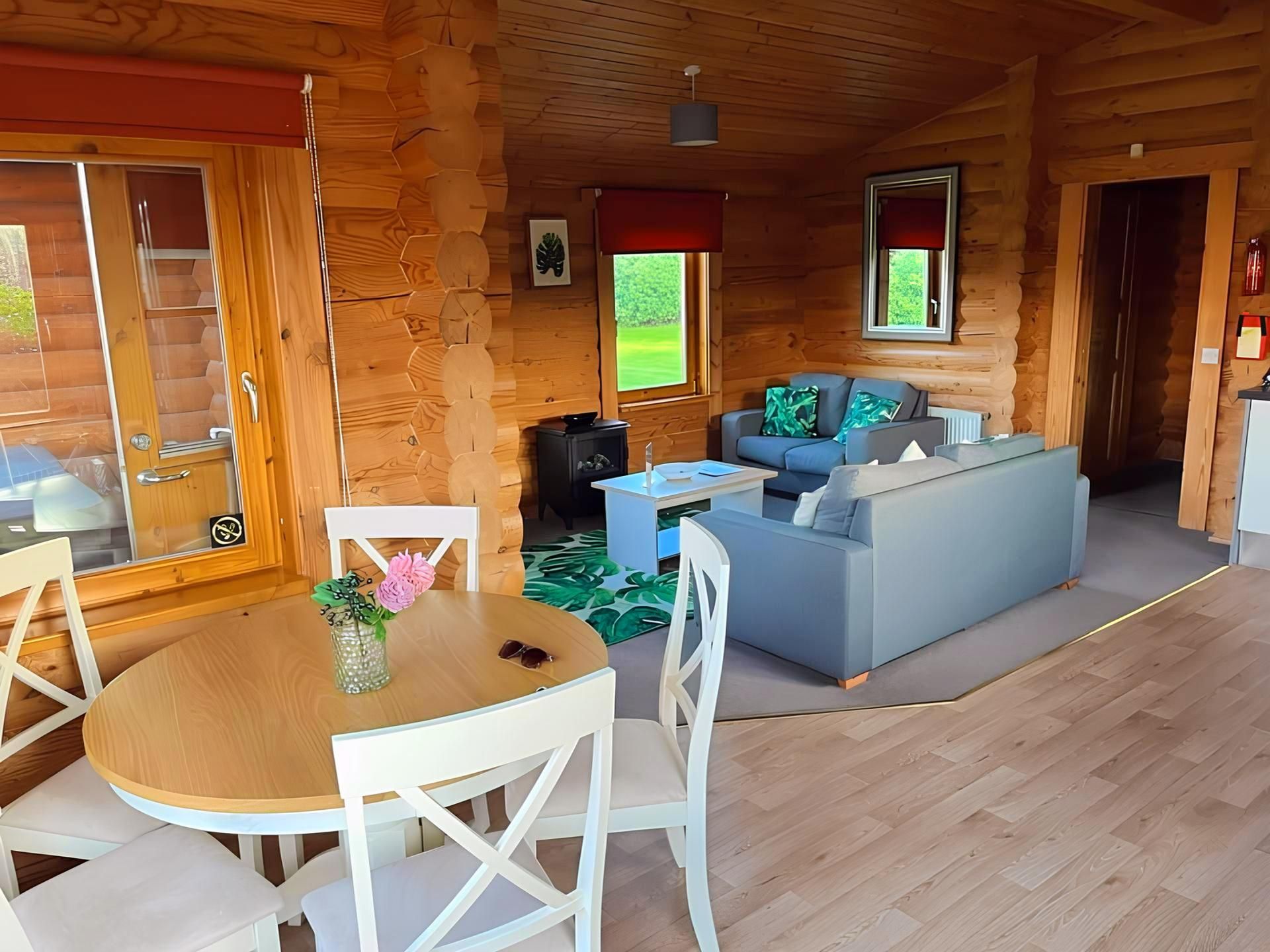 Nestled within our Little Eden Country Park in Bridlington, this luxurious Estonian pet-friendly log cabin offers an idyllic retreat for relaxation and unwinding. The cabin boasts a master bedroom complete with an en-suite shower room, alongside a cosy twin bedroom, ensuring comfortable accommodation for guests. The spacious open-plan living area, encompassing a lounge, kitchen, and dining space, seamlessly extends outdoors to a covered hot tub area. This lodge is the quintessential setting for those seeking a serene escape in the heart of the countryside.
