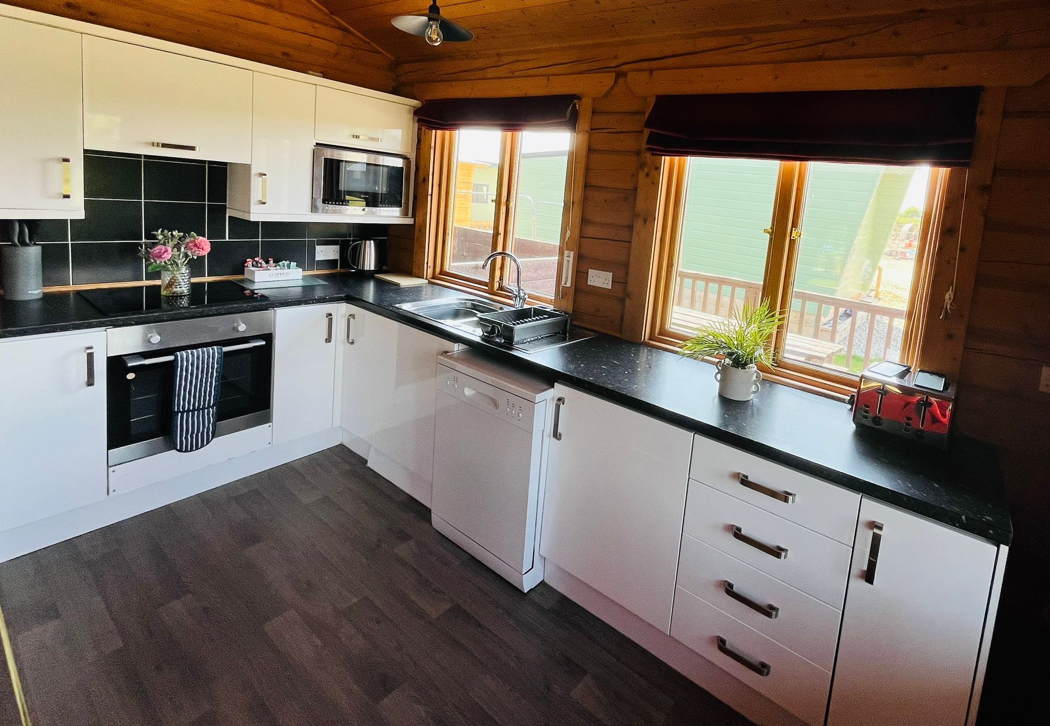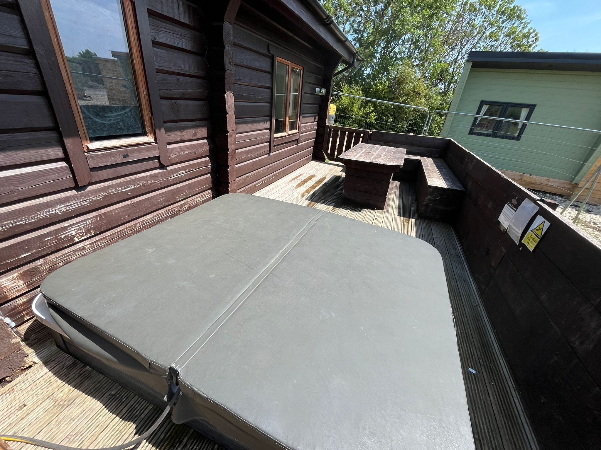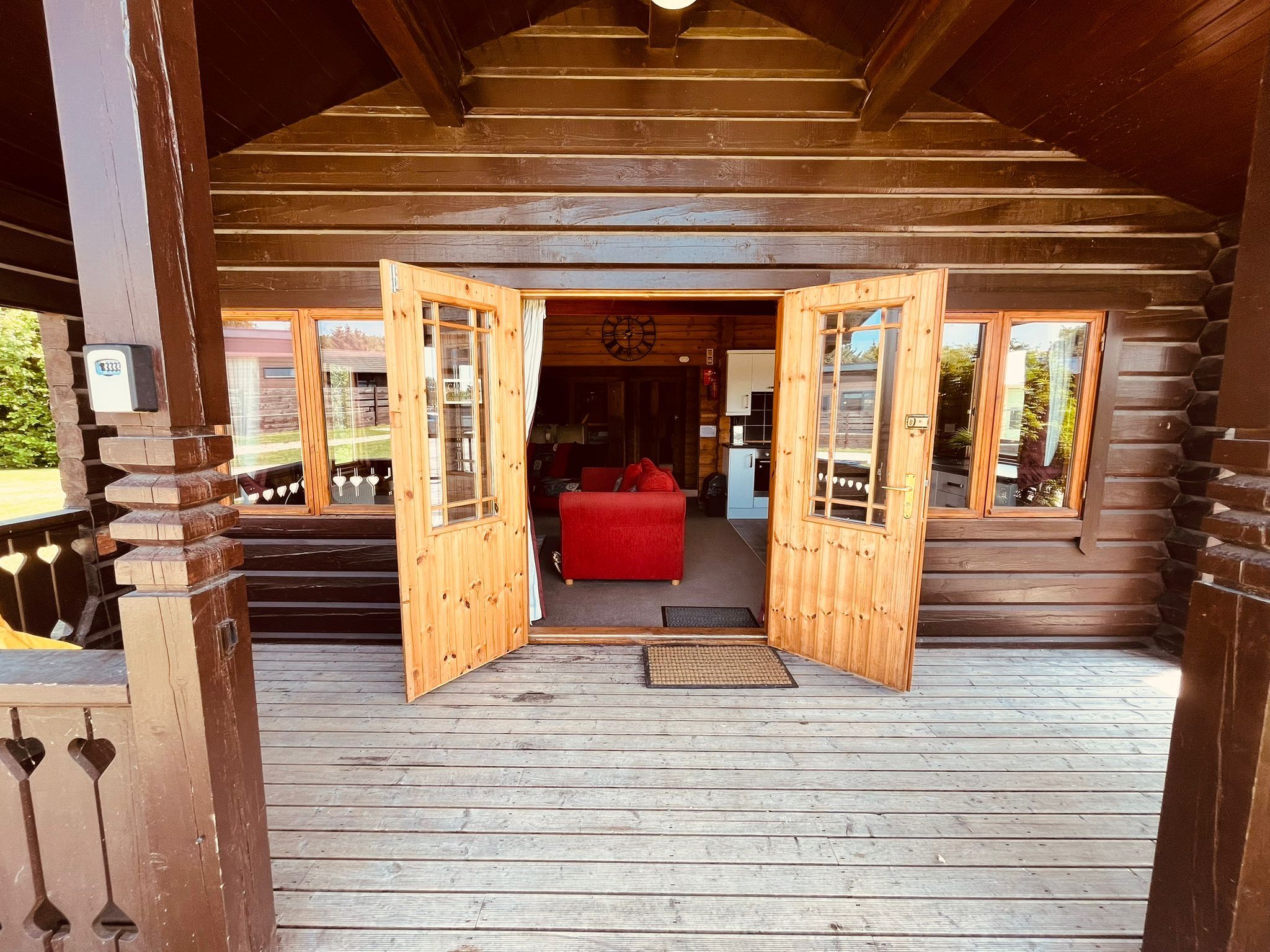 Luxury, contemporary, Estonian pet friendly log cabin with one double with en-suite bathroom and a double bottom single top bunk bedroom. Spacious open plan lounge, kitchen and dining area. Doors leading to an outdoor hot tub with a large decking area and garden area. Surrounded by greenery, this lodge is perfect to relax and unwind.