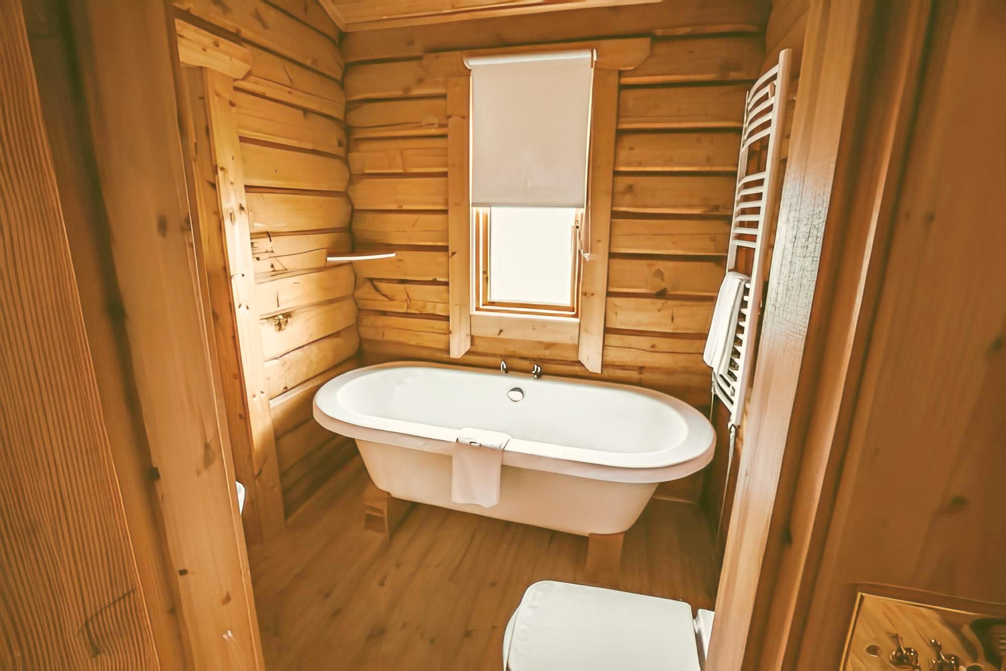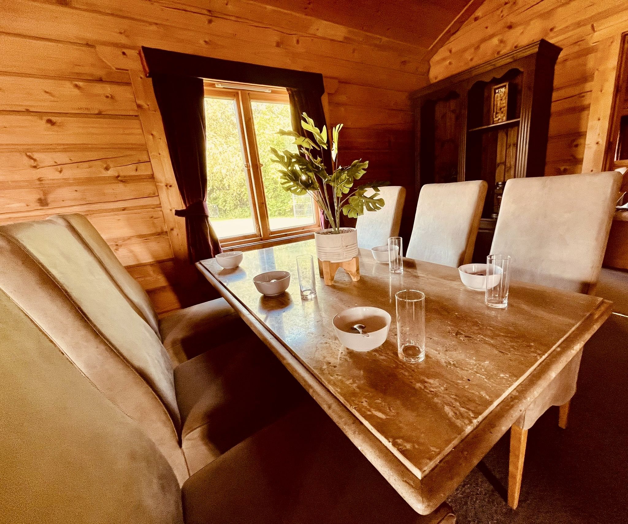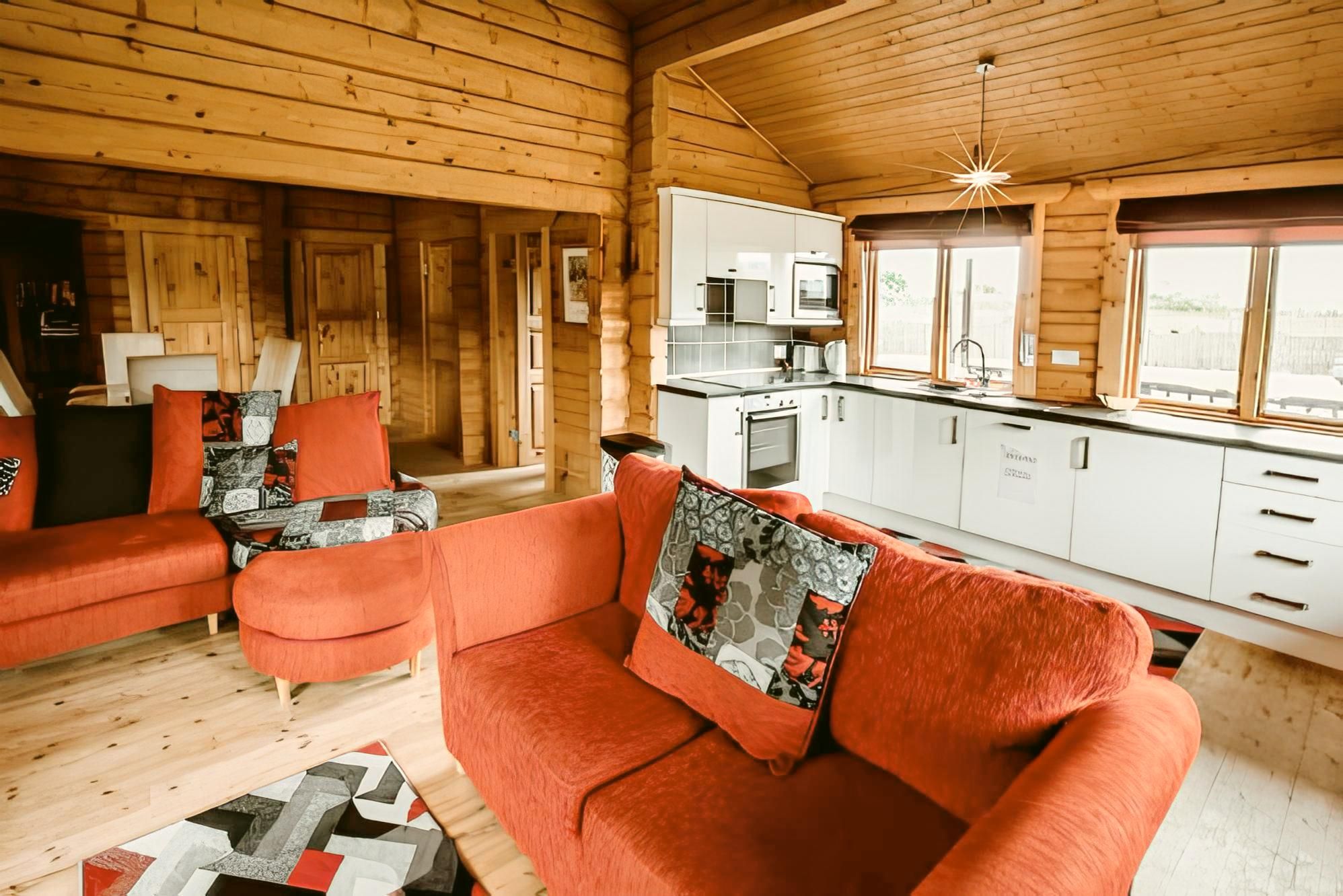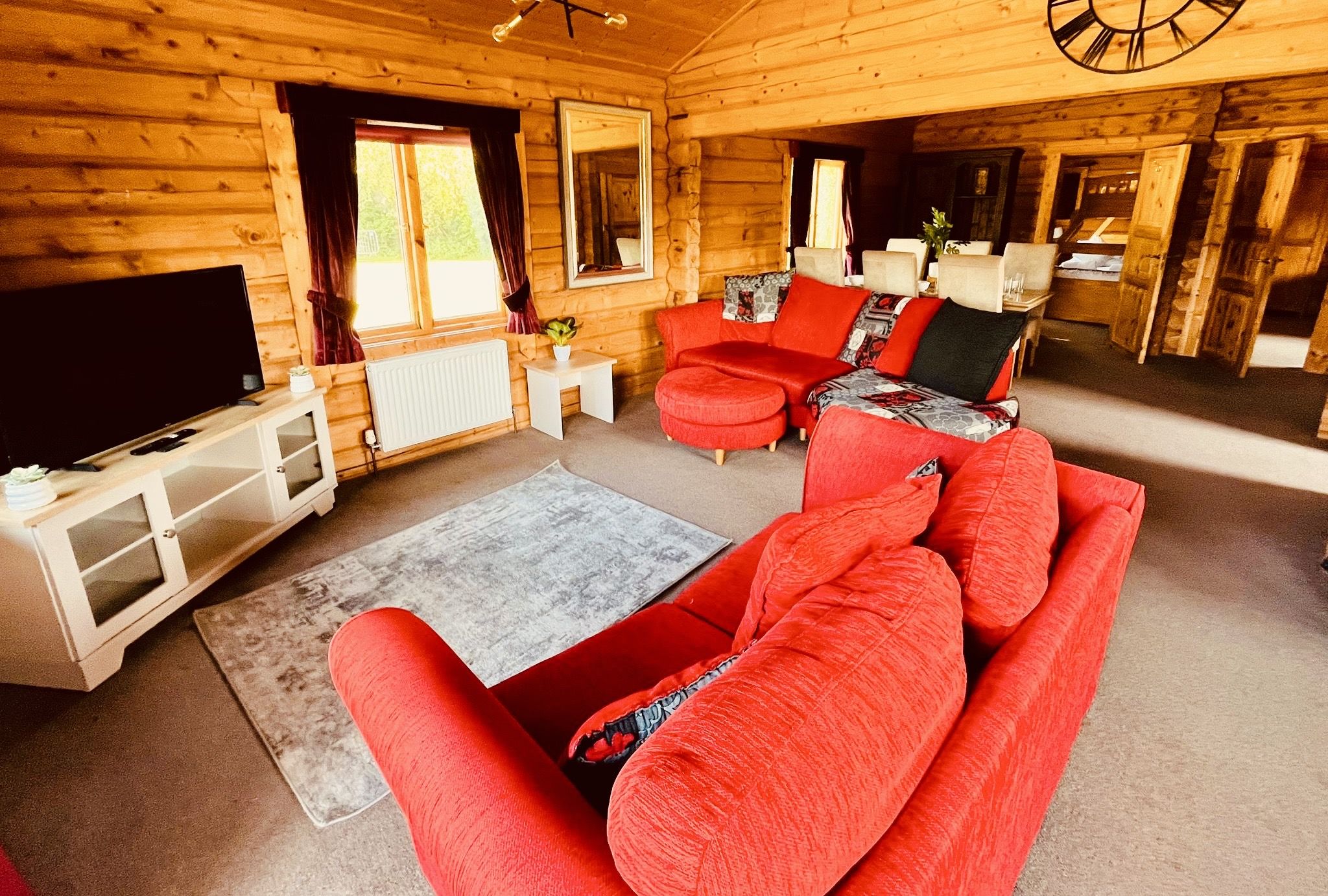Luxury, contemporary, Estonian pet friendly log cabin with one double with en-suite bathroom and a double bottom single top bunk bedroom. Spacious open plan lounge, kitchen and dining area. Doors leading to an outdoor hot tub with a large decking area and garden area. Surrounded by greenery, this lodge is perfect to relax and unwind.