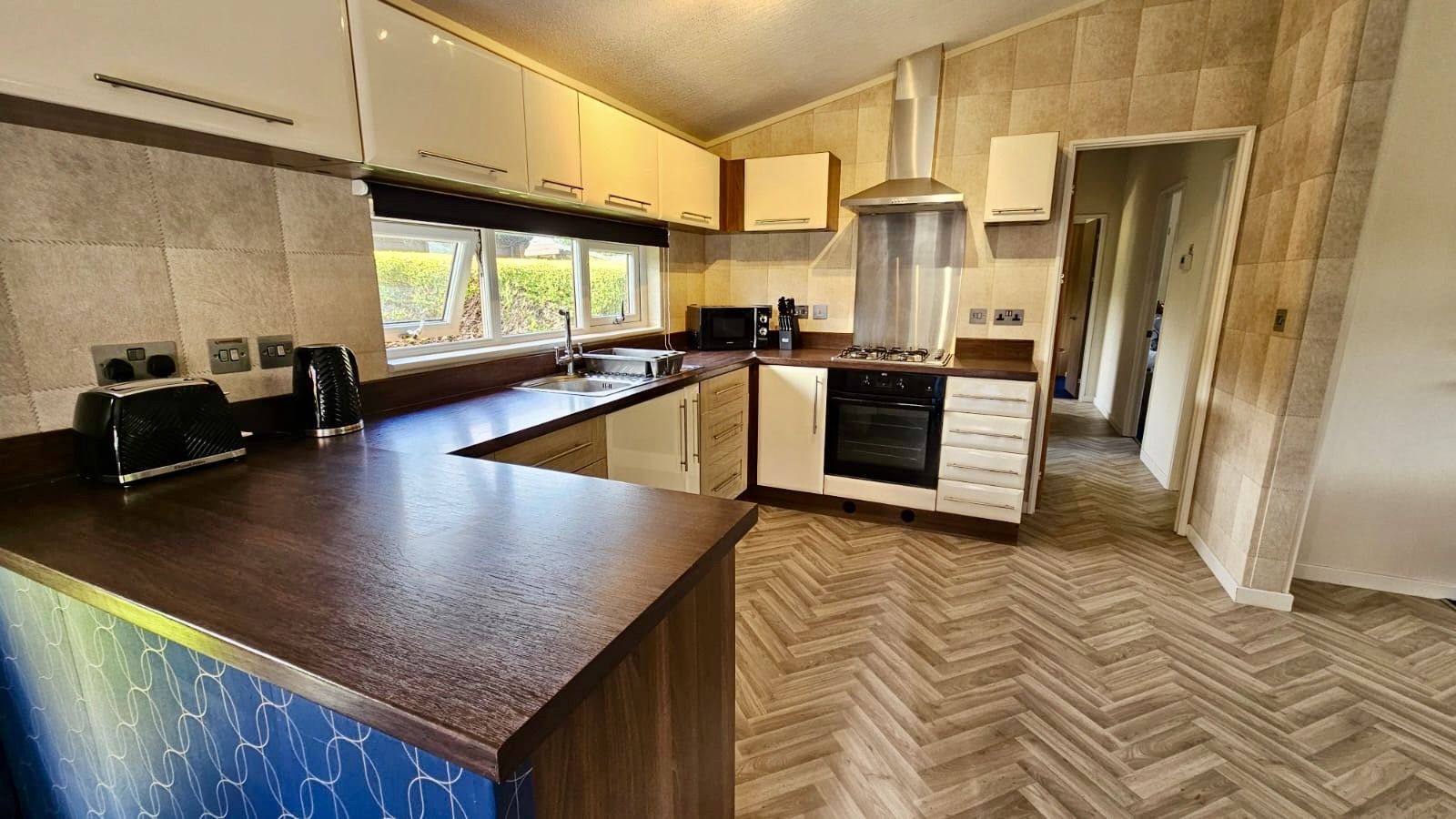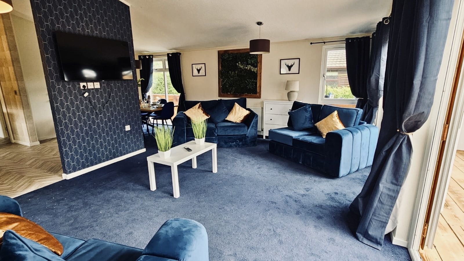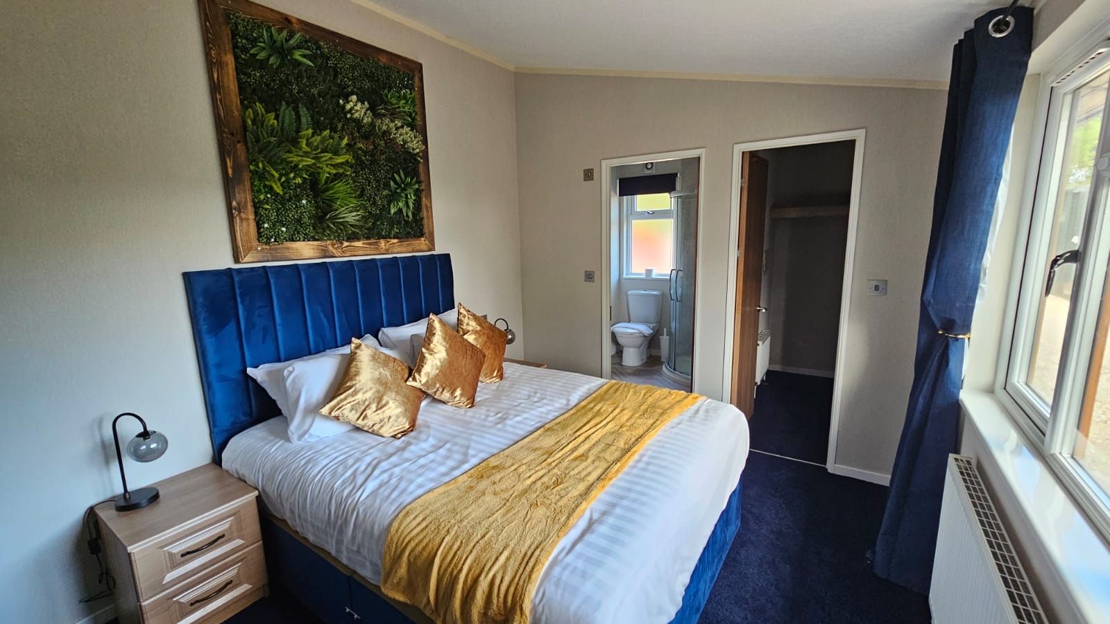 An elegant and contemporary lodge with a master double with en-suite bathroom and a twin bedroom. Stylish open plan lounge, kitchen and dining area with patio doors leading to decking area with outdoor hot tub.