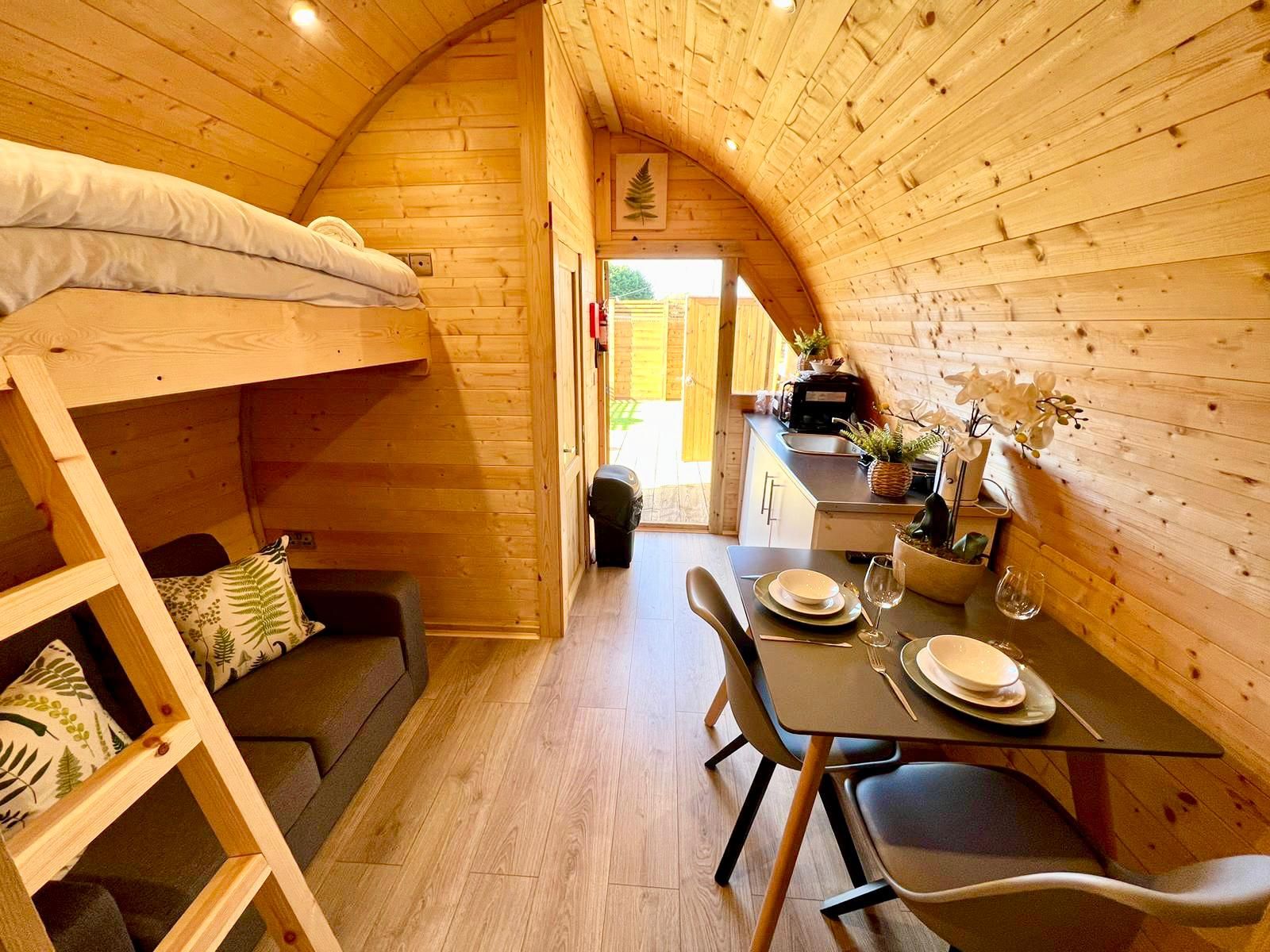 Our Acorn Pods are a popular accommodation type suitable for couples, friends, solo customers to enjoy the perfect break. Inside the pod is an open plan living area with 1 double bed, a mini kitchen with a microwave oven and fridge.