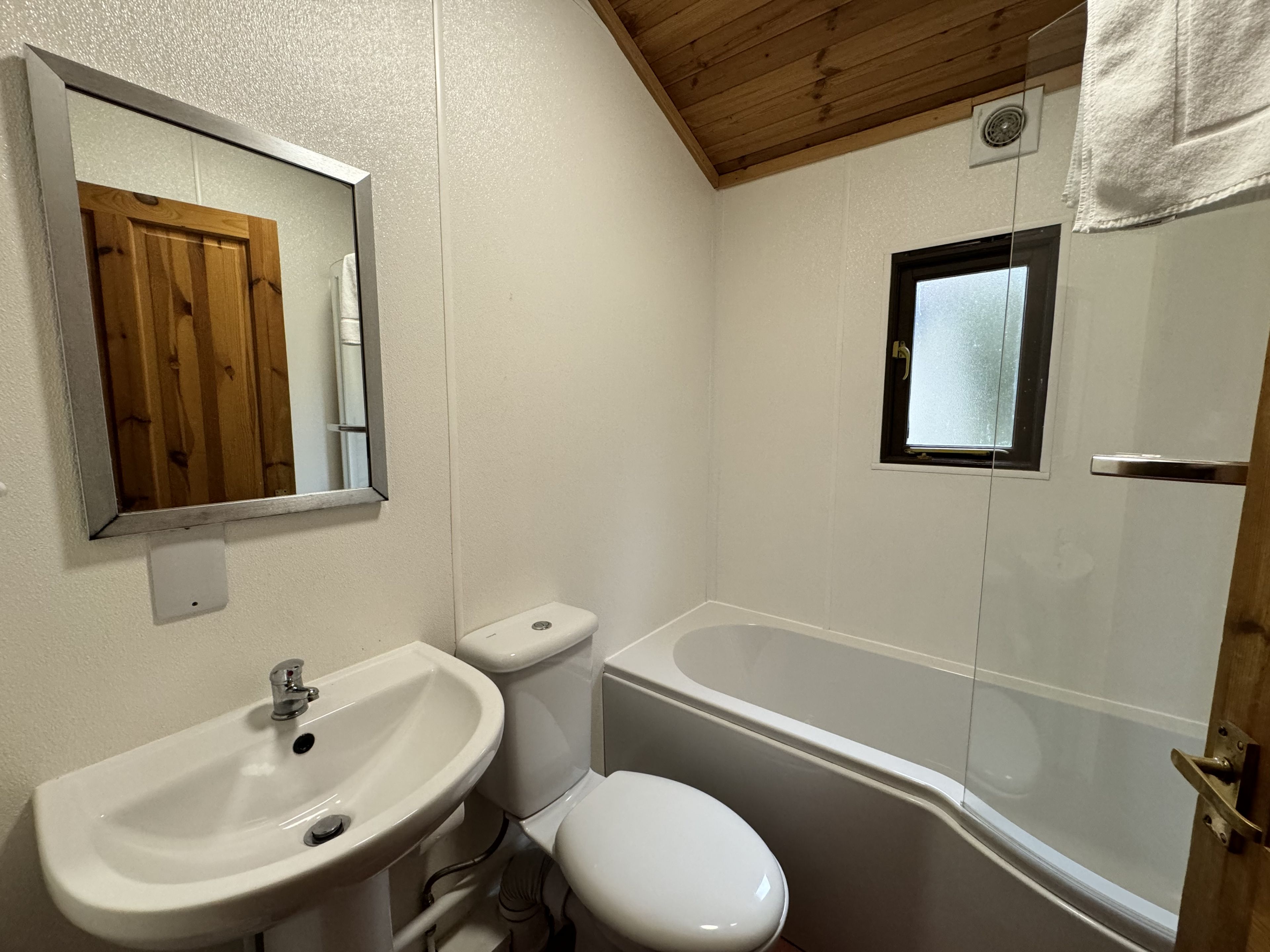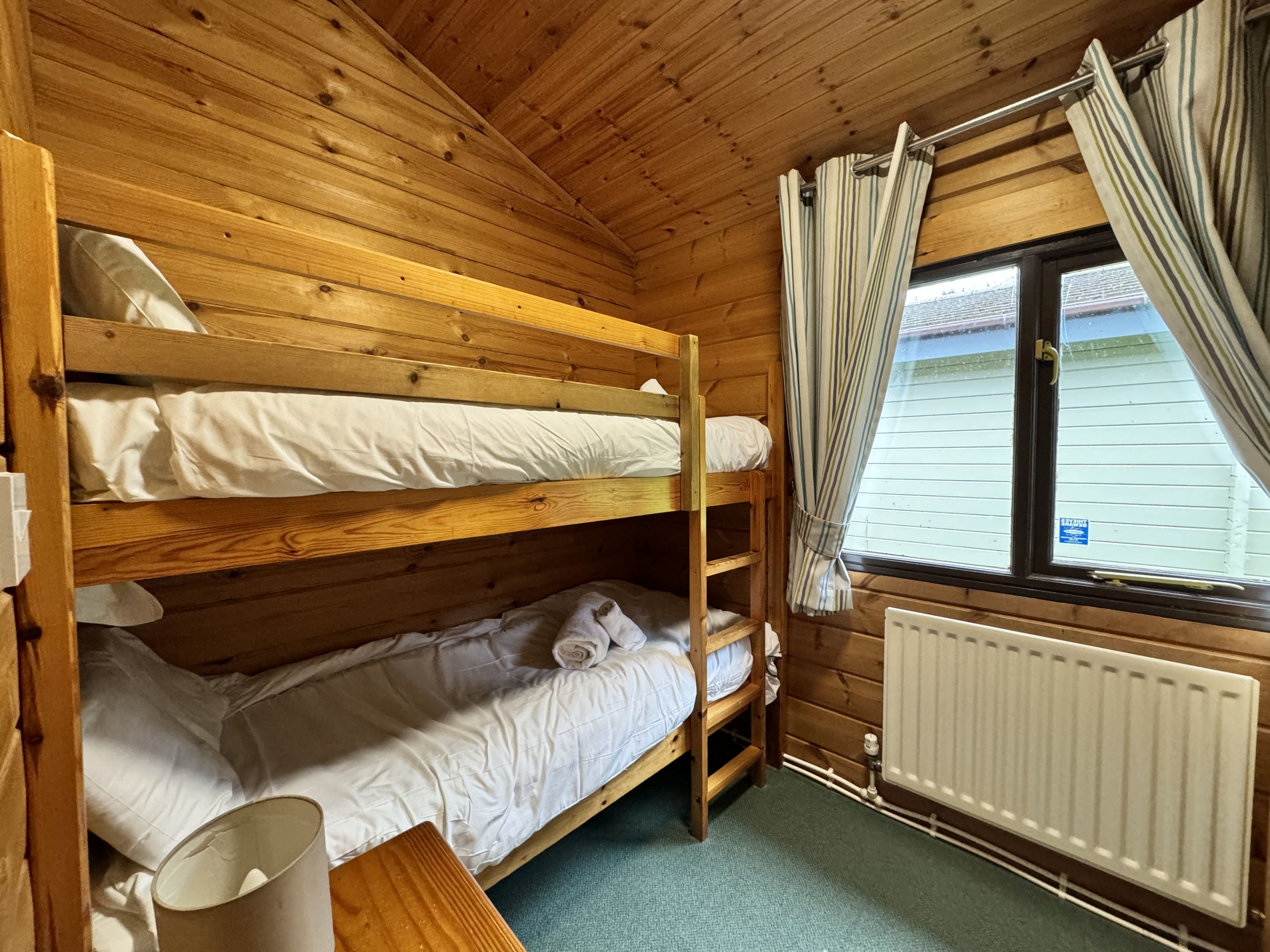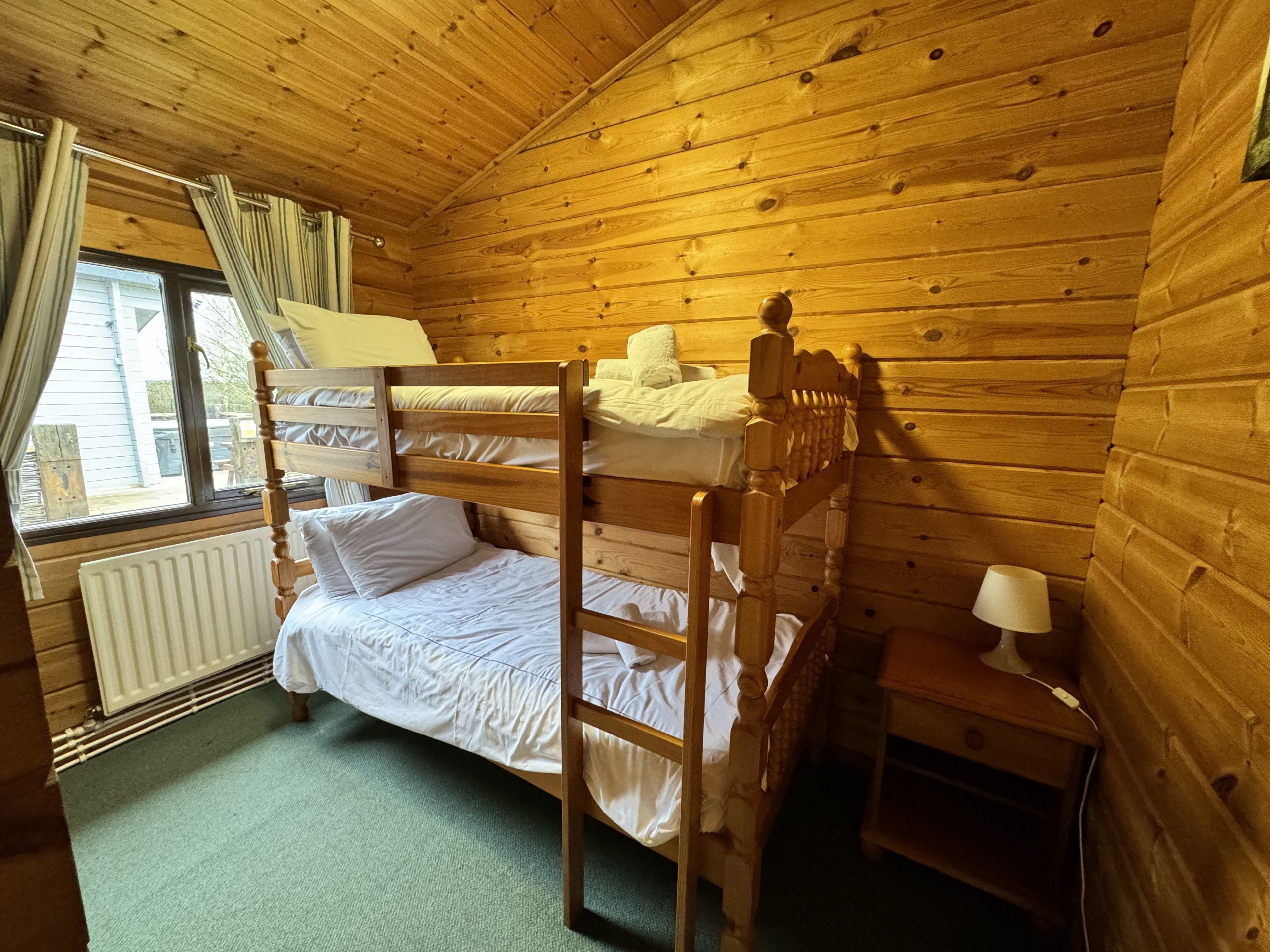 The Forester 4 Lodge, features two double rooms—one with a TV and ensuite—and two bunk bed rooms. Fitted with modern comforts like a flat screen TV with Freeview, a fully-equipped kitchen, and central heating, the lodge promises relaxation. Enjoy the deck's seating area, make use of the nearby disposable barbecue stand, and benefit from parking for two cars. The lodge upholds a non-smoking policy.