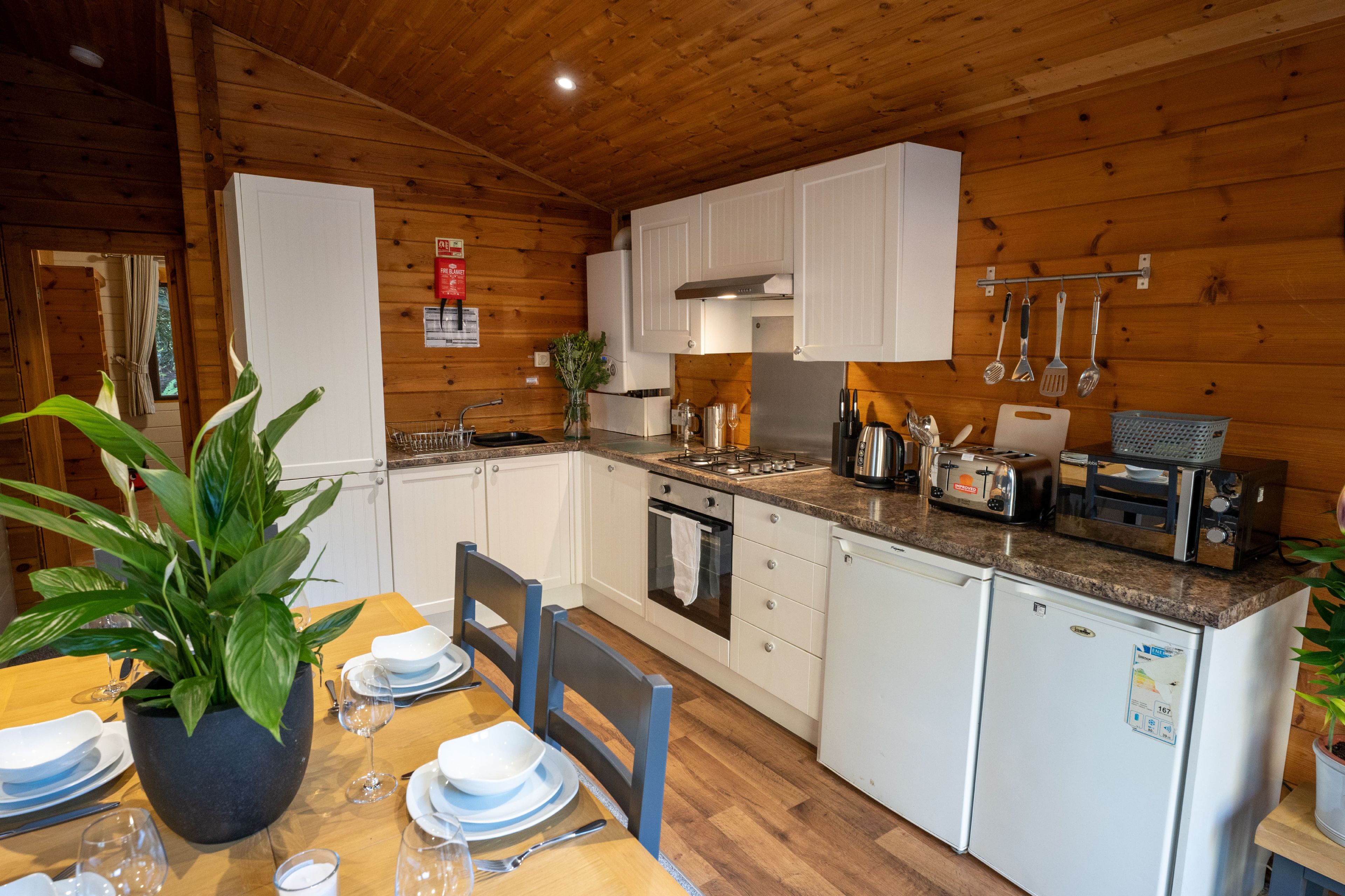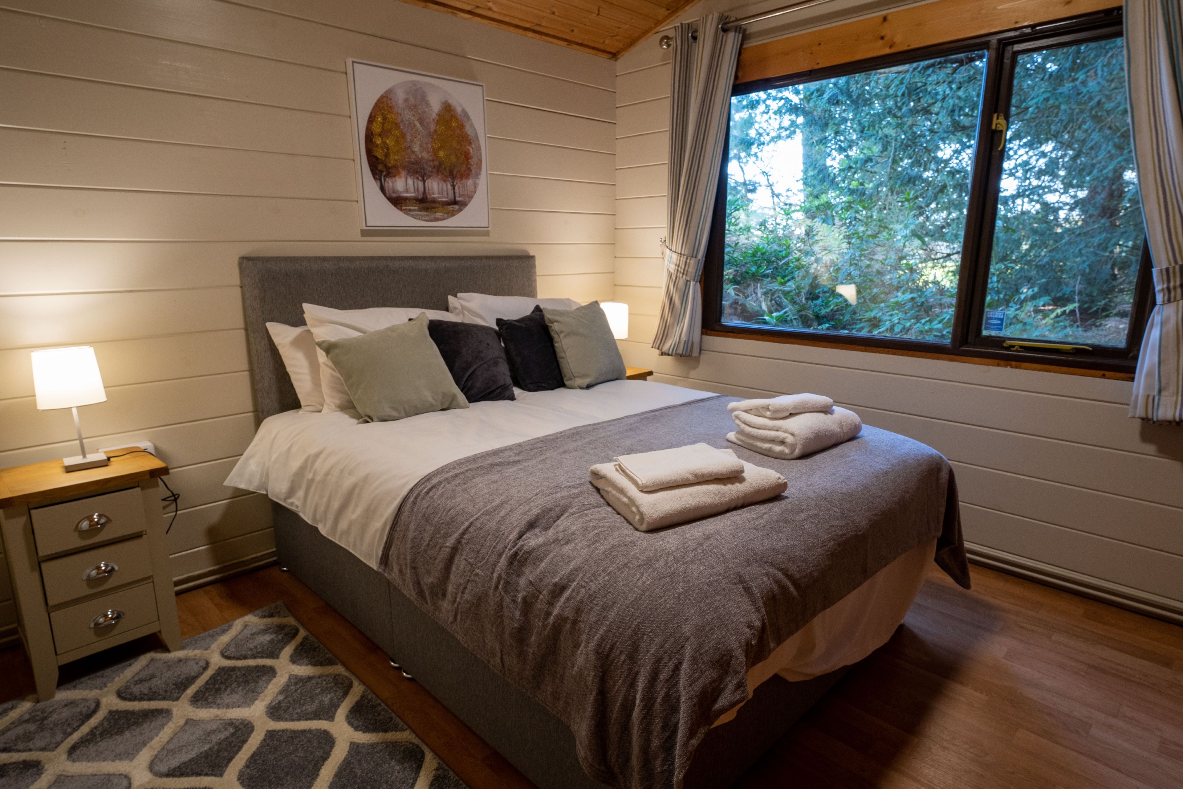 Comfortable cosy lodge. One double with TV and one twin. Shower. Flat screen TV. Dishwasher. Central heating. Decking with seating area.