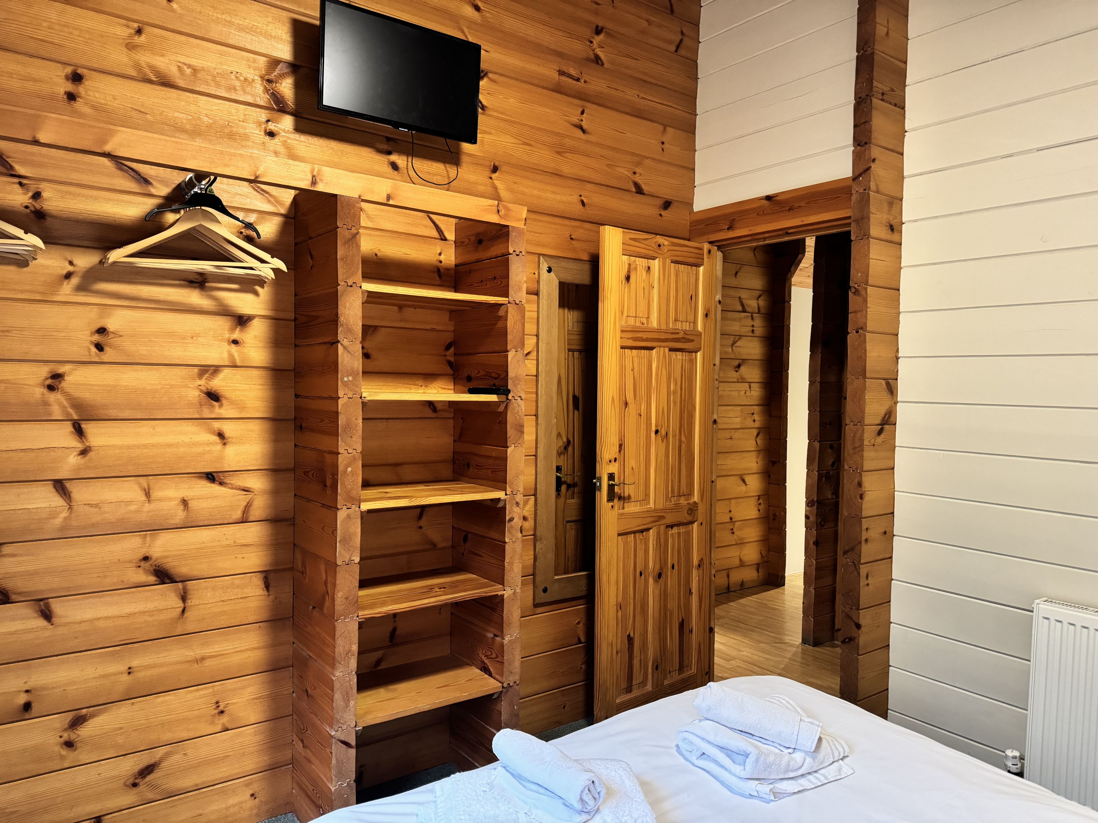 The Robin Hood Lodge, a perfect fusion of woodland tranquility and modern comfort. Featuring a double room with TV, an additional single roo...