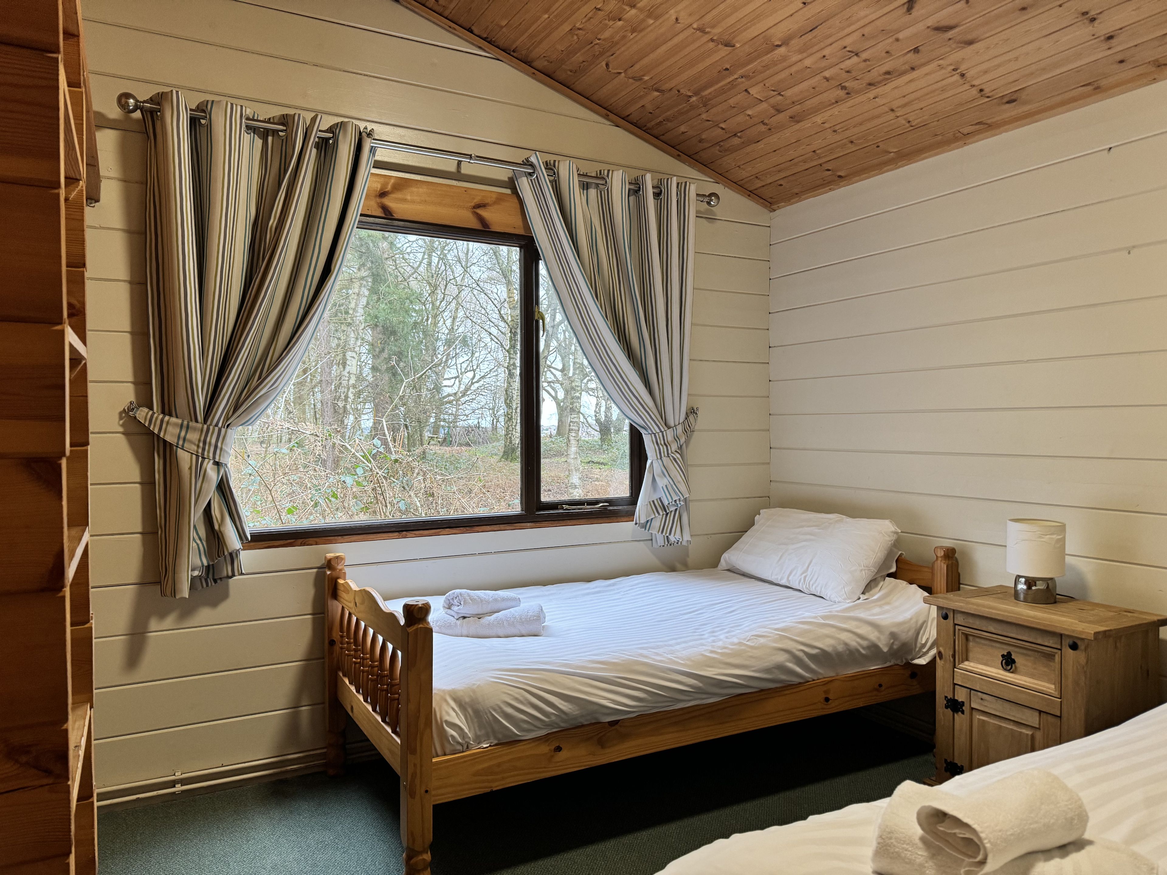 Comfortable cosy lodge. One double with TV and one twin. Shower. Flat screen TV. Dishwasher. Central heating. Decking with seating area.