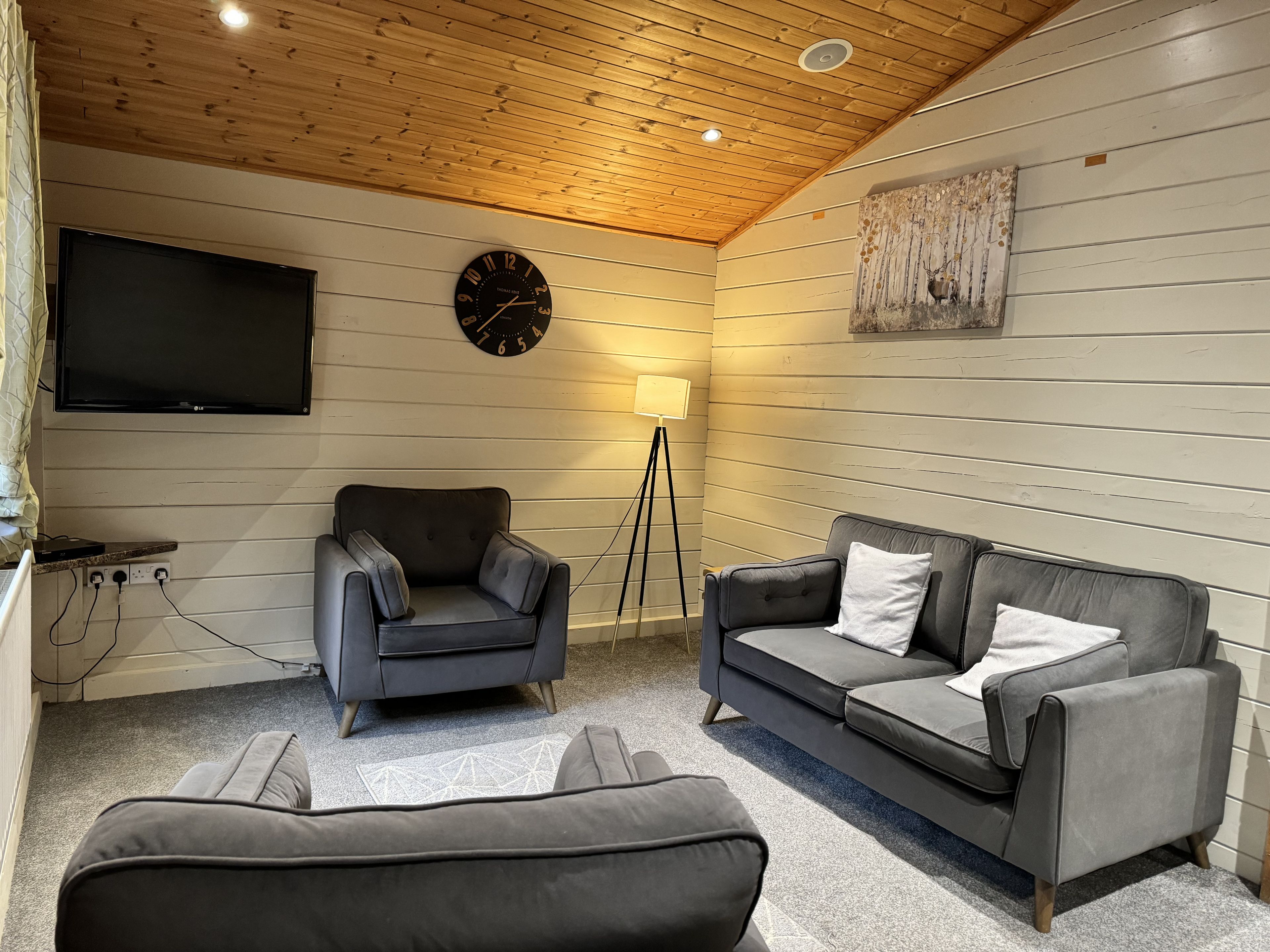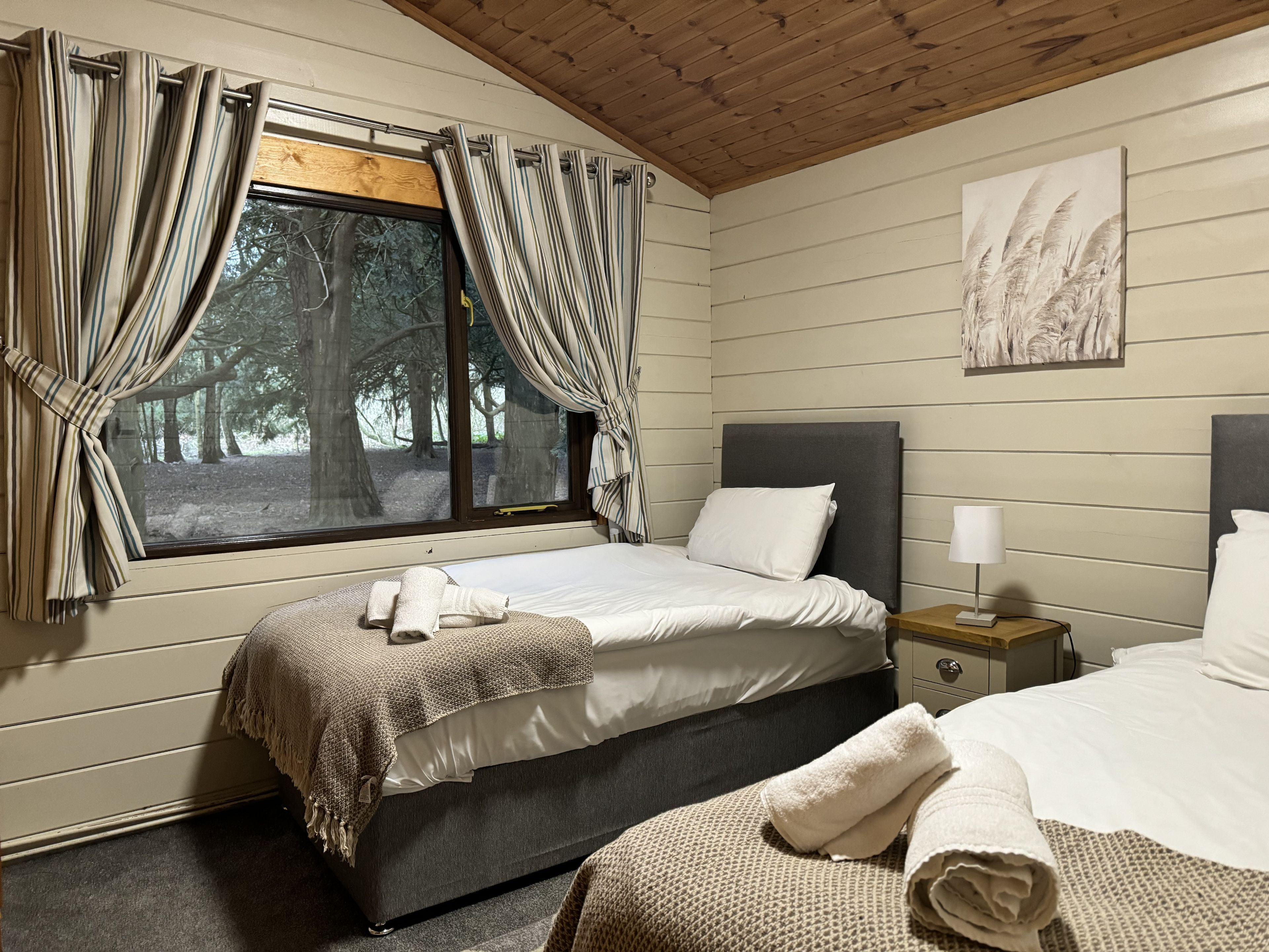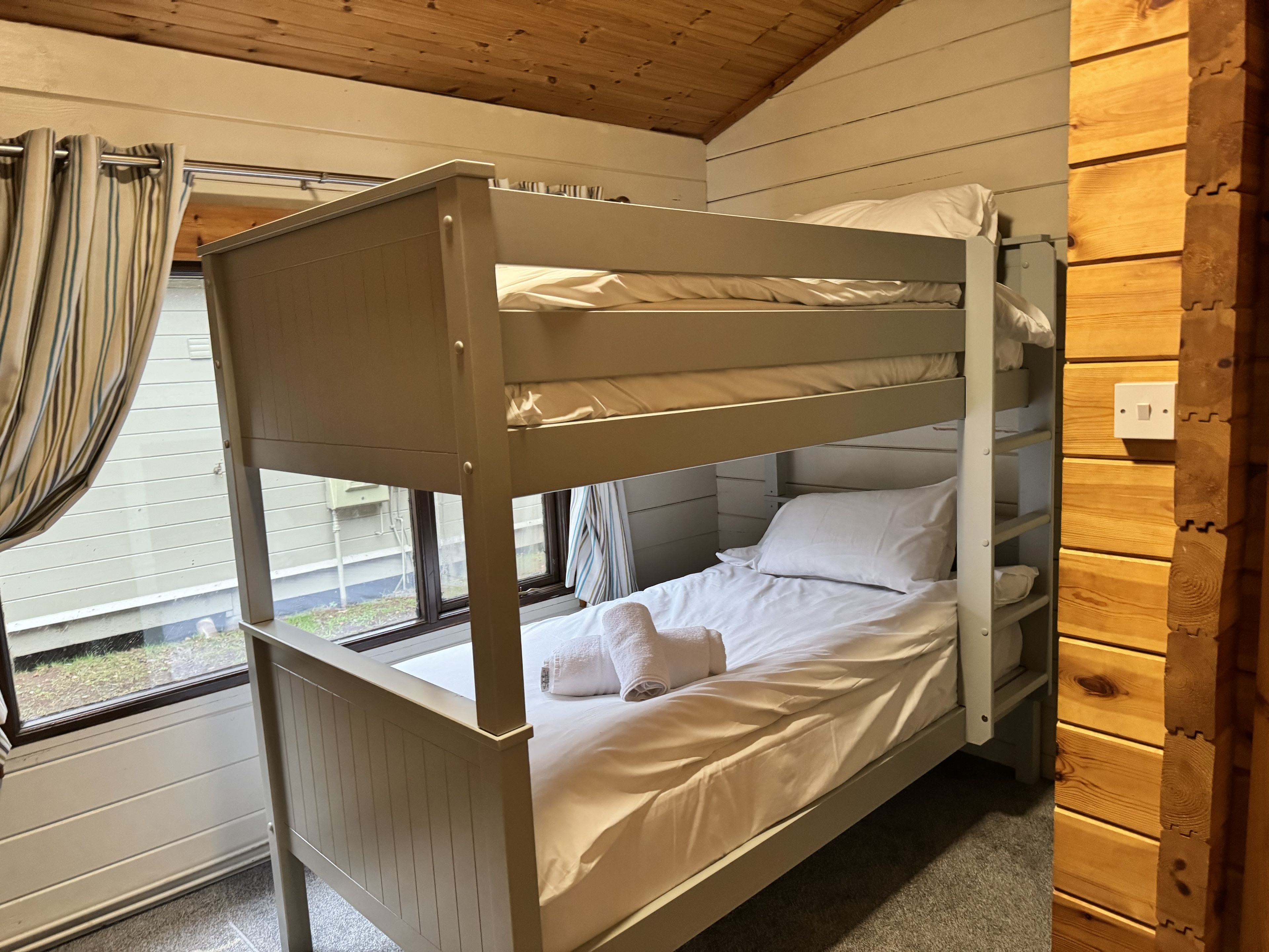Escape to the newly refurbished Loxley Lodge, nestled in a peaceful woodland setting. It features a double room with TV, a twin room, and a bunk bed room. Enjoy modern amenities including a flat screen TV with Freeview, a fully equipped kitchen, and central heating.