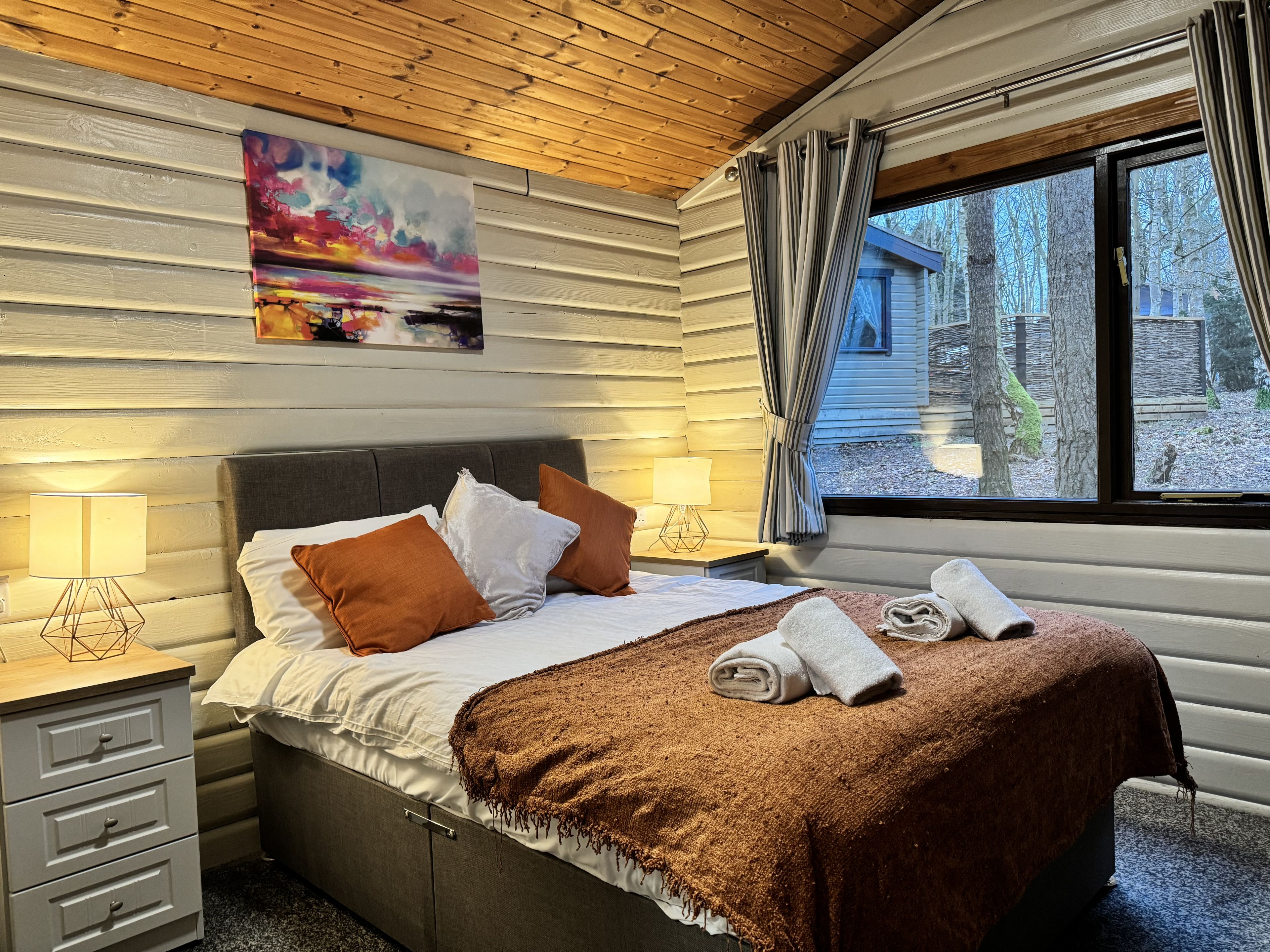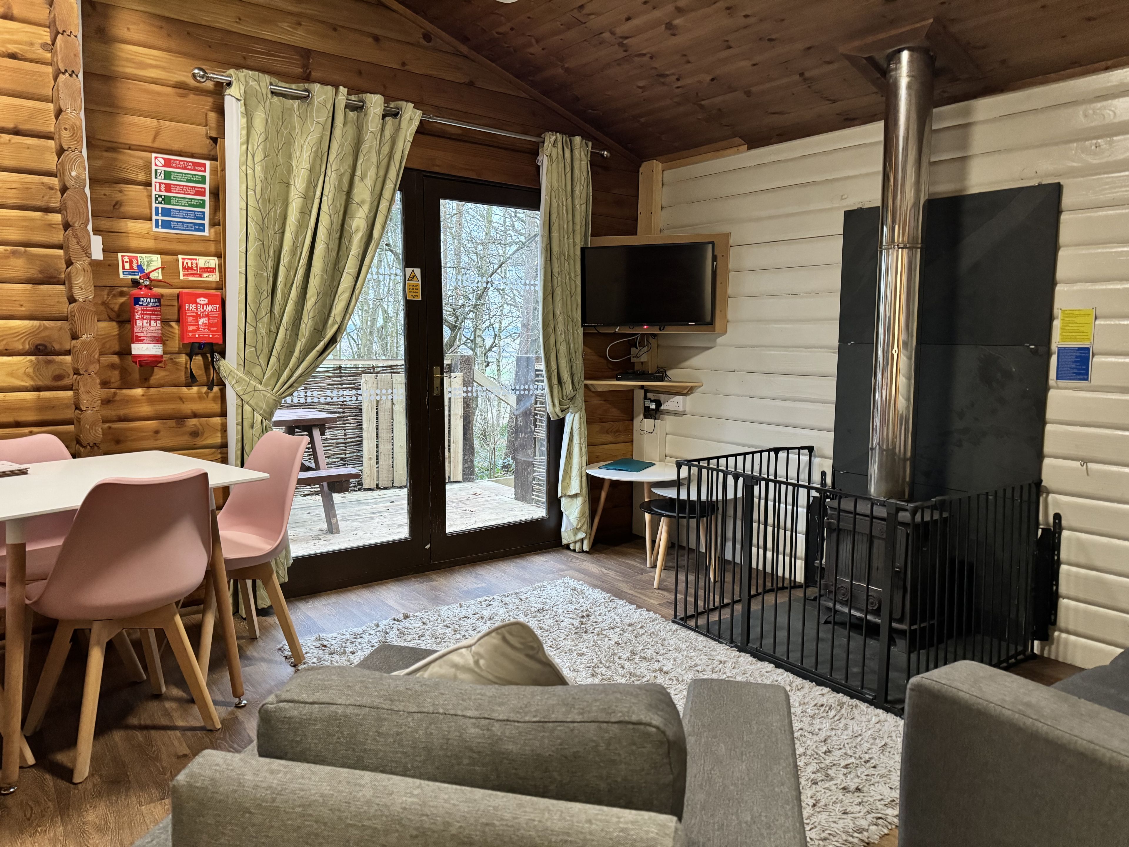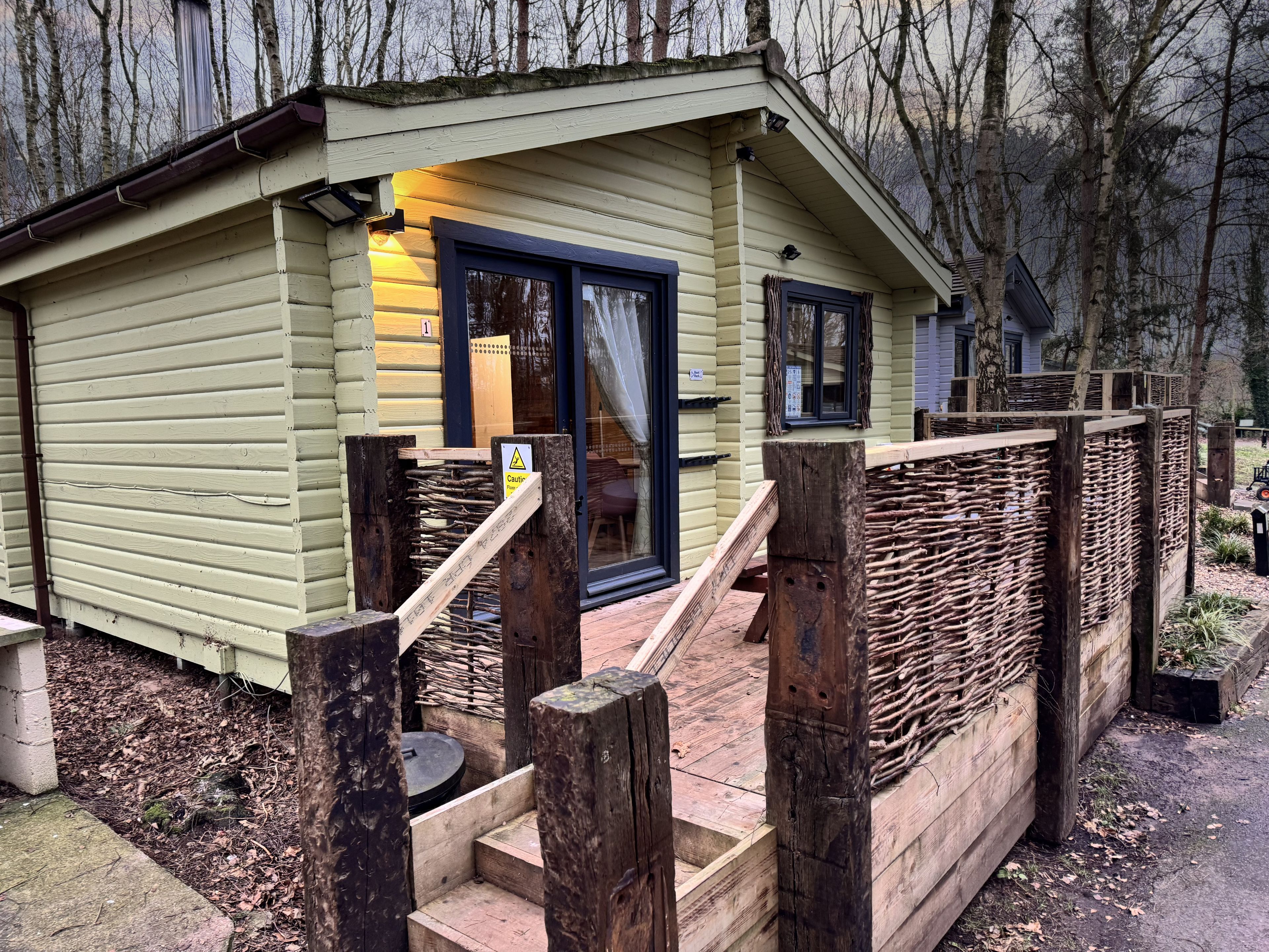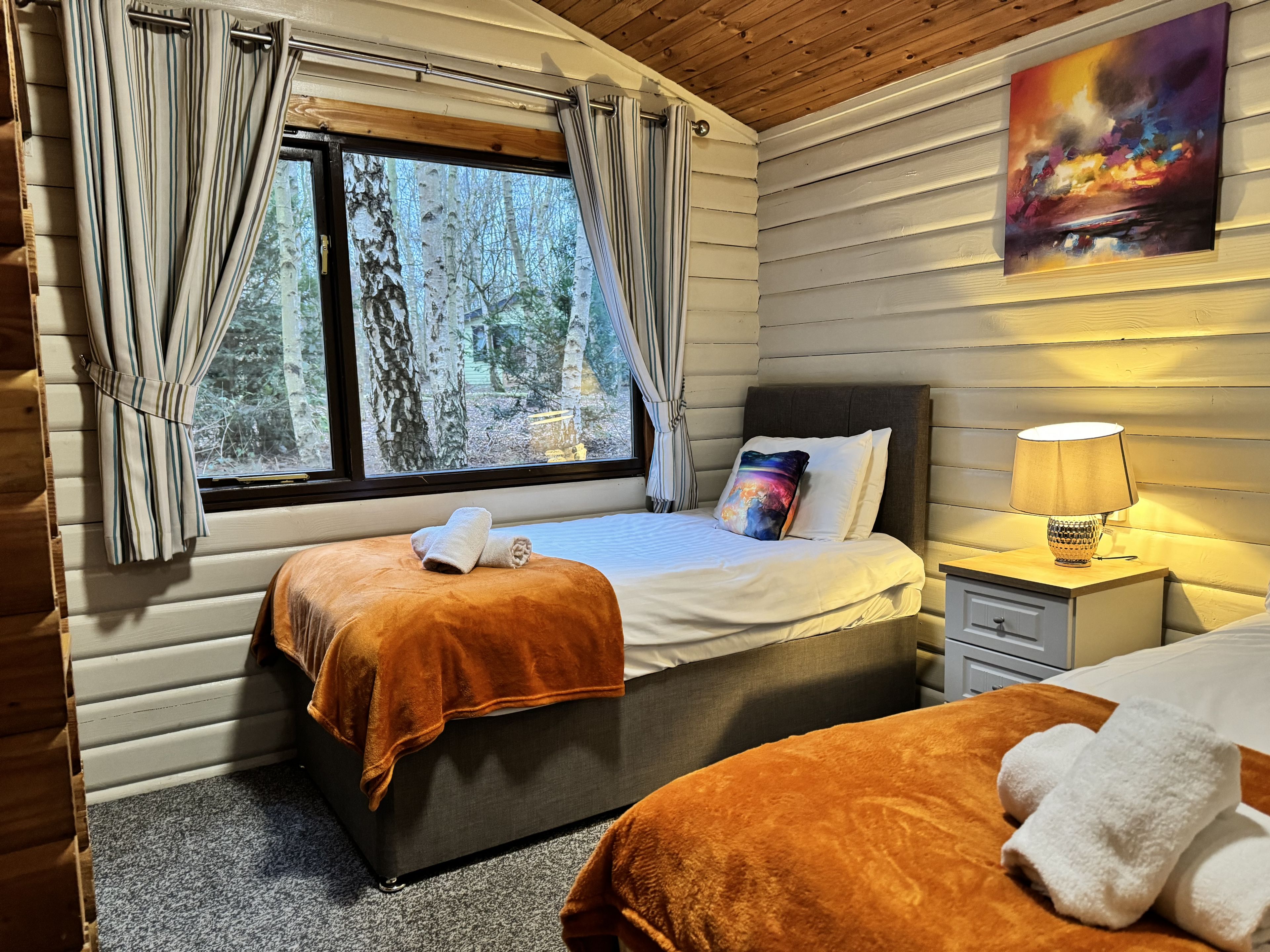 Comfortable cosy lodge. One double with TV and one twin. Shower. Flat screen TV. Dishwasher. Central heating. Decking with seating area.