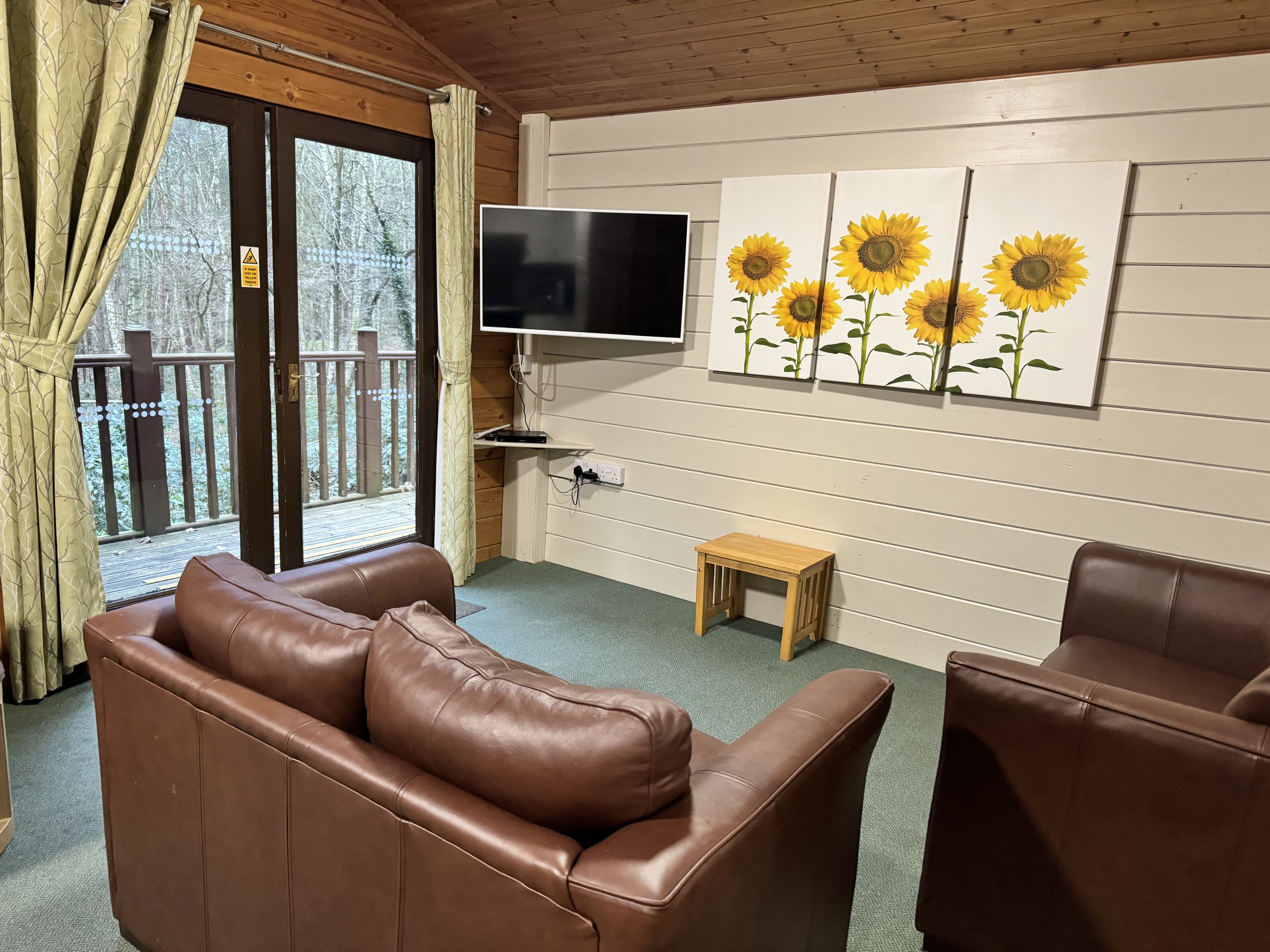 sylvan - Comfortable cosy lodge. One double with TV and one twin. Shower. Flat screen TV. Dishwasher. log burner and electric heaters. Decki...