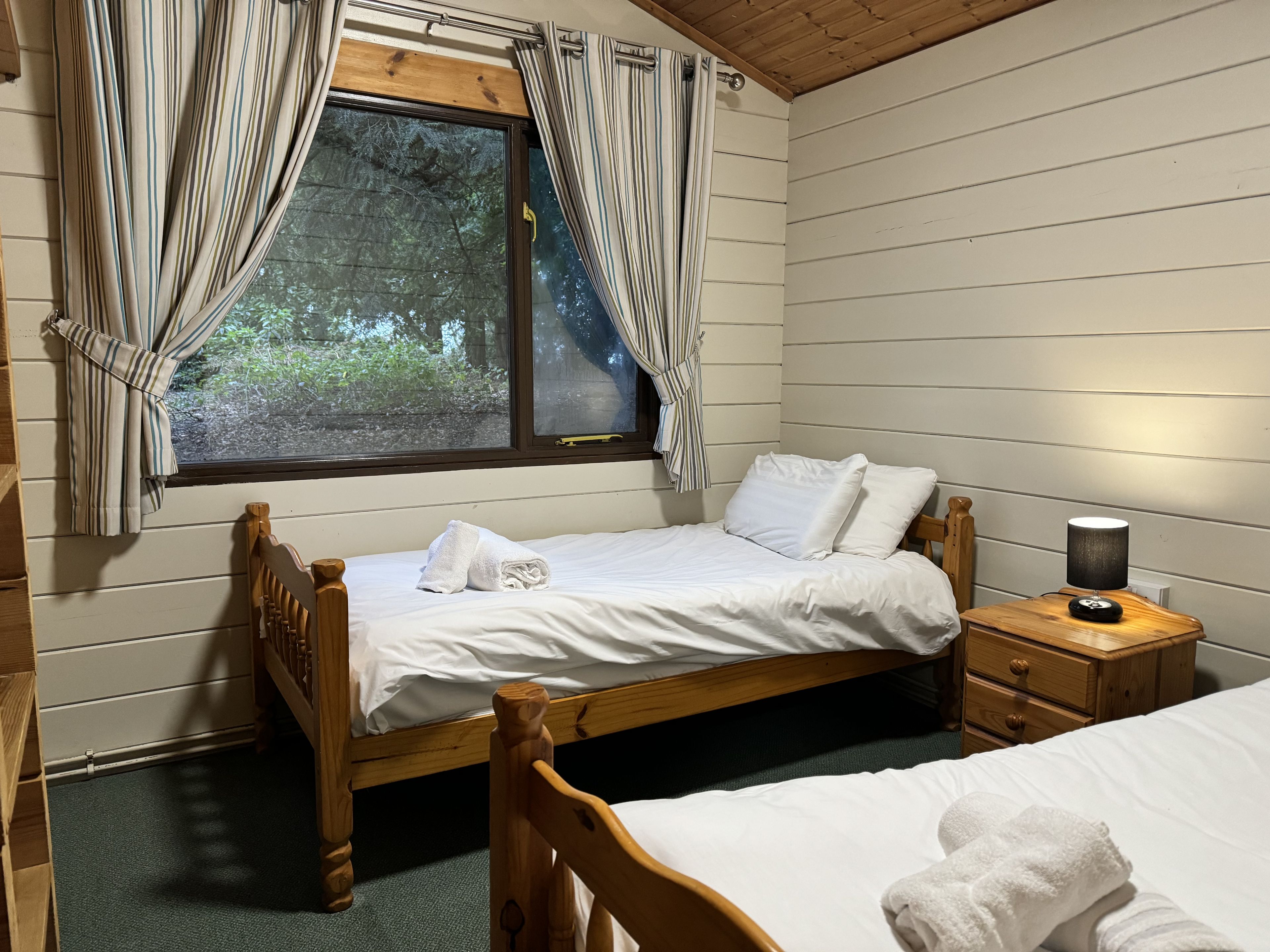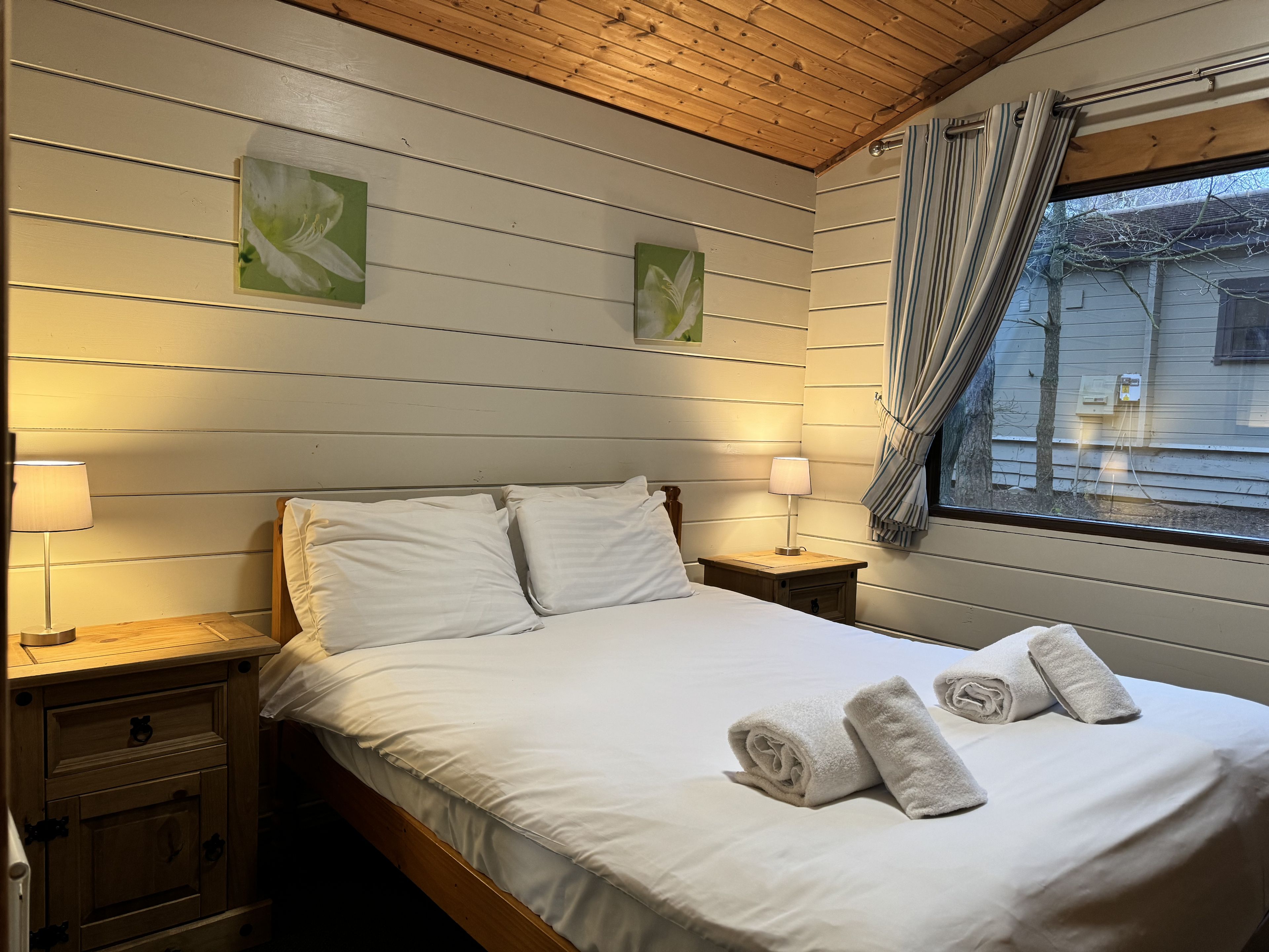 Comfortable cosy lodge. One double with TV and one twin. Shower. Flat screen TV. Dishwasher. Central heating. Decking with seating area.