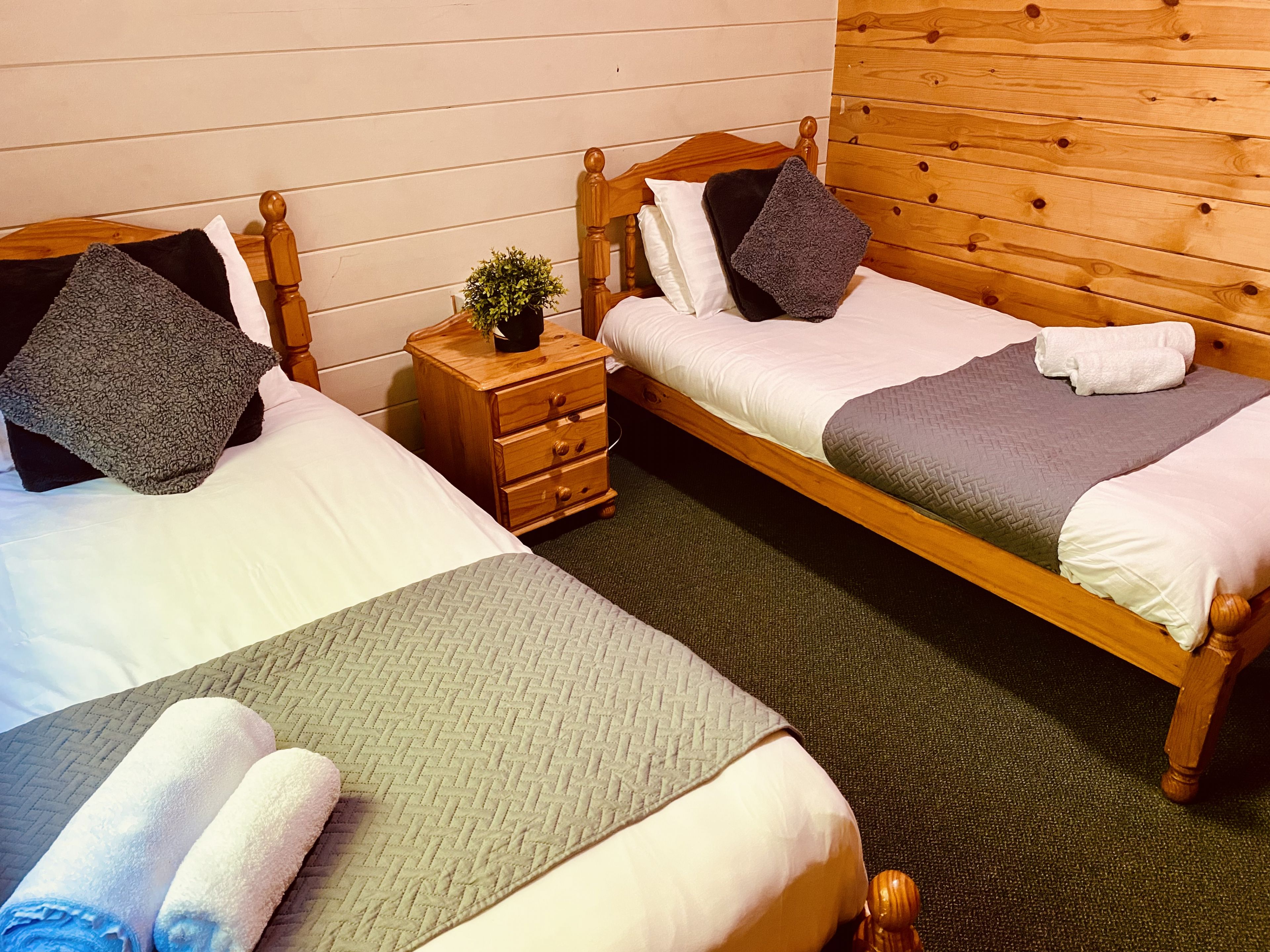 Comfortable cosy lodge. One double with TV and one twin. Shower. Flat screen TV. Dishwasher. Central heating. Decking with seating area.