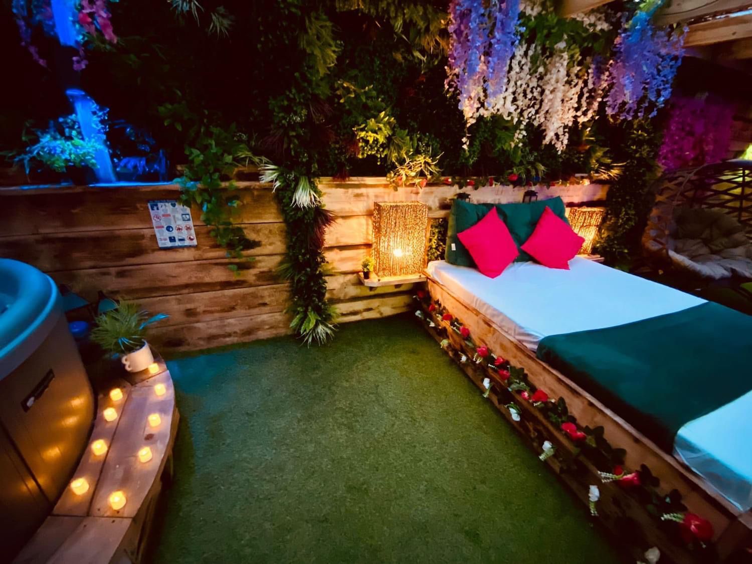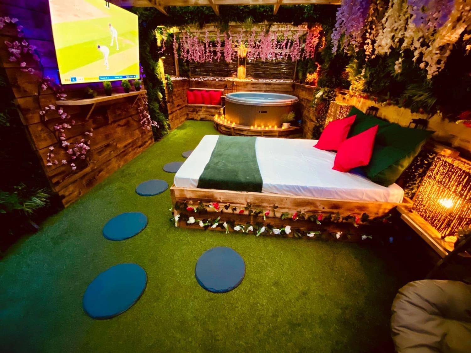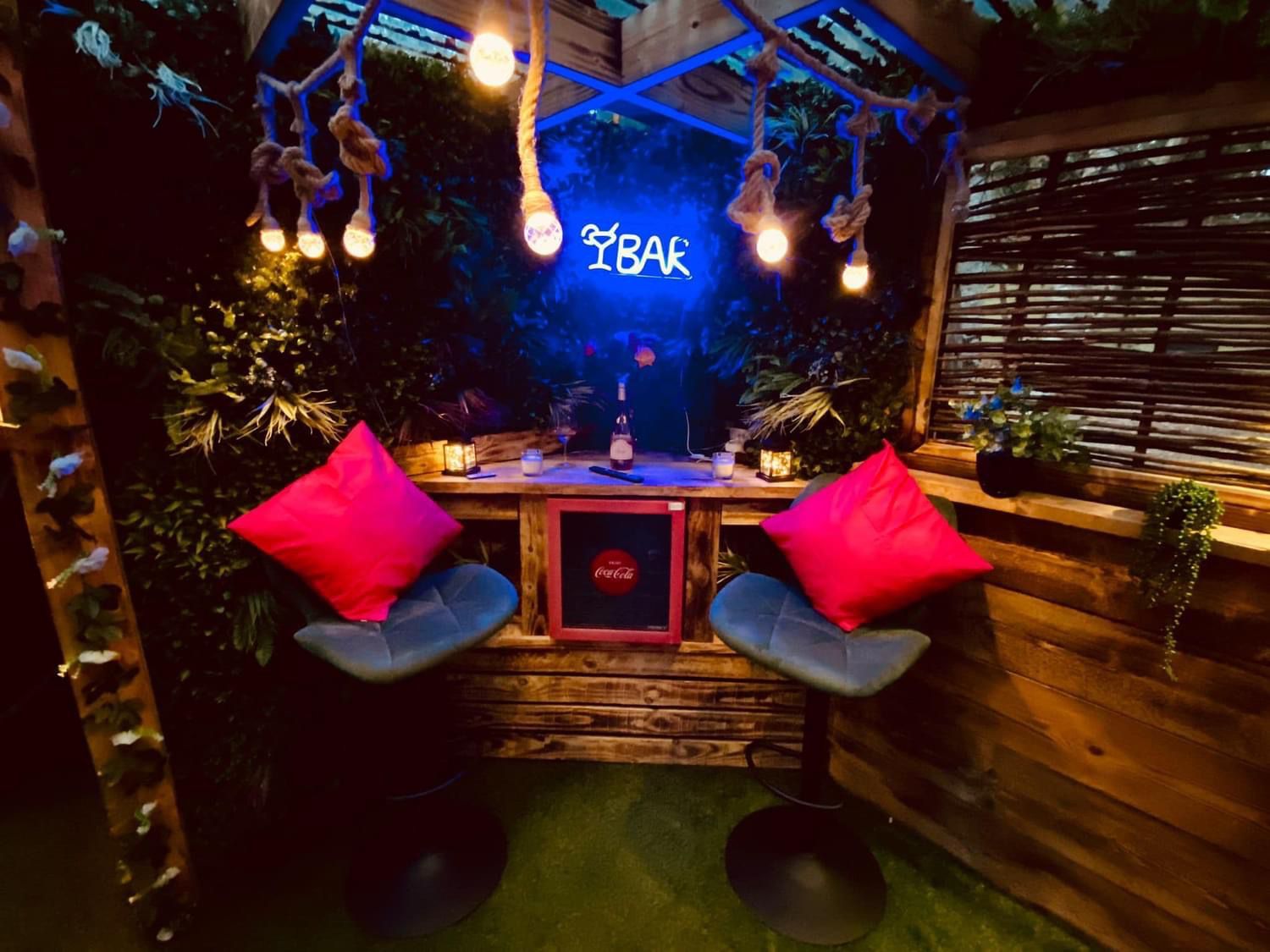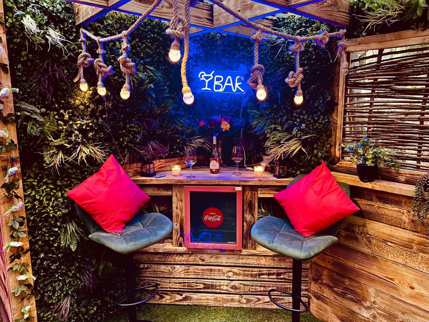 This lodge boasts a contemporary, fully-equipped kitchen, a master bedroom furnished with a cosy double bed, and a second bedroom that houses two single beds. Now a gem within our Secret Retreats collection, it has been enhanced further to include an enclosed garden area. This garden is adorned with exquisite tropical lighting and lush foliage, creating an enchanting ambience. Additionally, guests can enjoy an outdoor bar area, a day bed for ultimate relaxation, and a massive 65" TV, perfect for entertainment.
