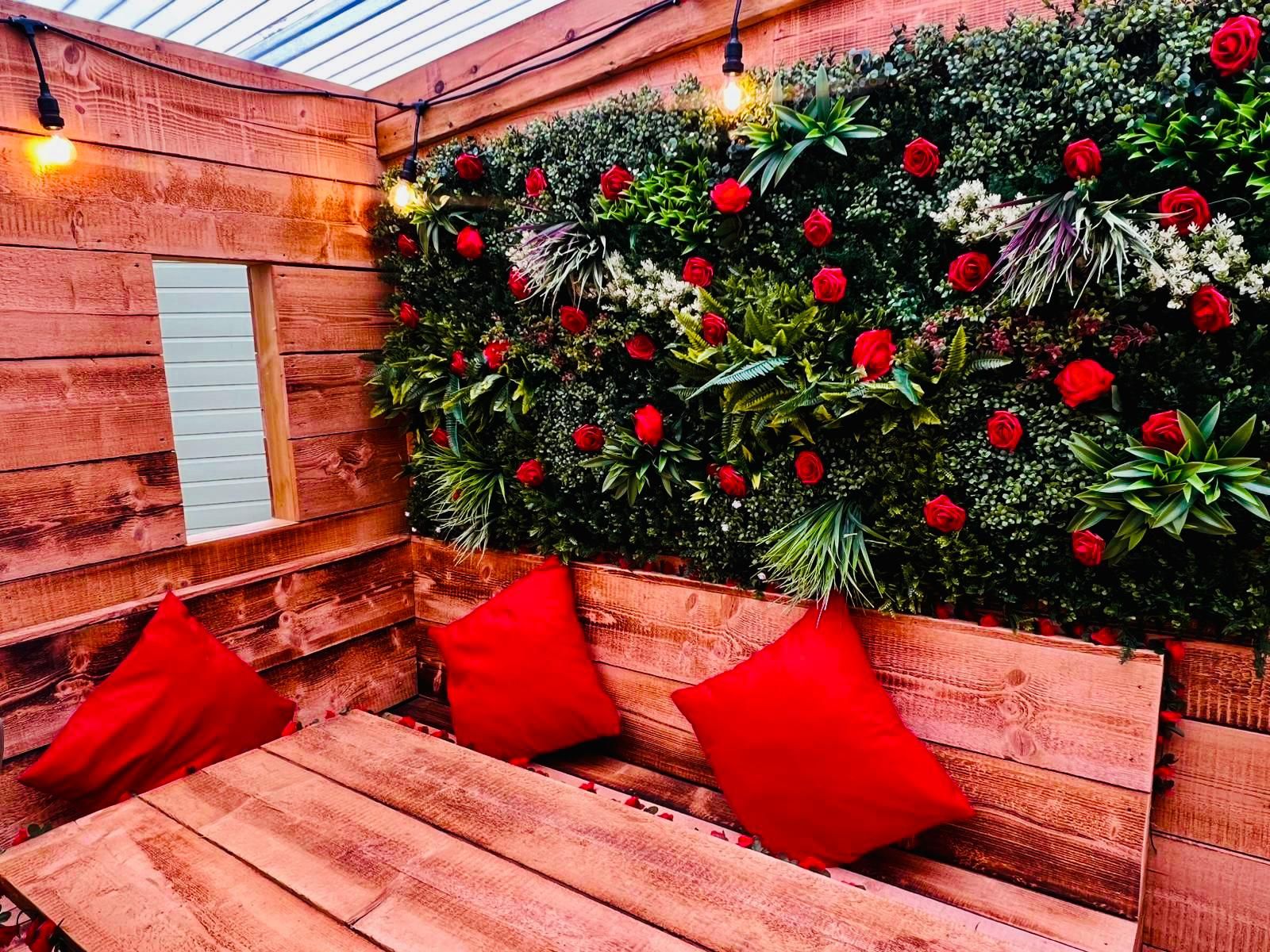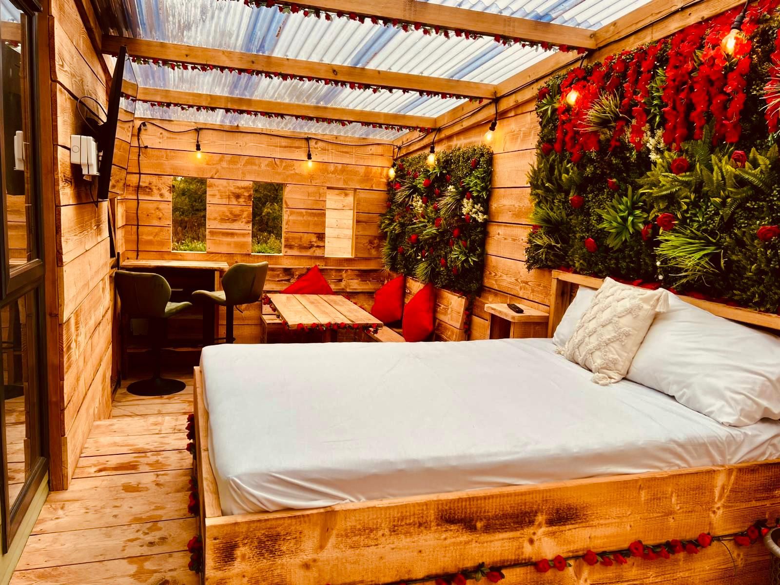 Romance meets rustic elegance in The Love Lodge, part of the exclusive Liv Secret Retreat Collection. This enchanting hideaway is designed for couples who want to escape, unwind, and reconnect in style. Surrounded by warm wooden tones, cascading red blooms, and soft ambient lighting, every inch of this space is created to set the mood for love.