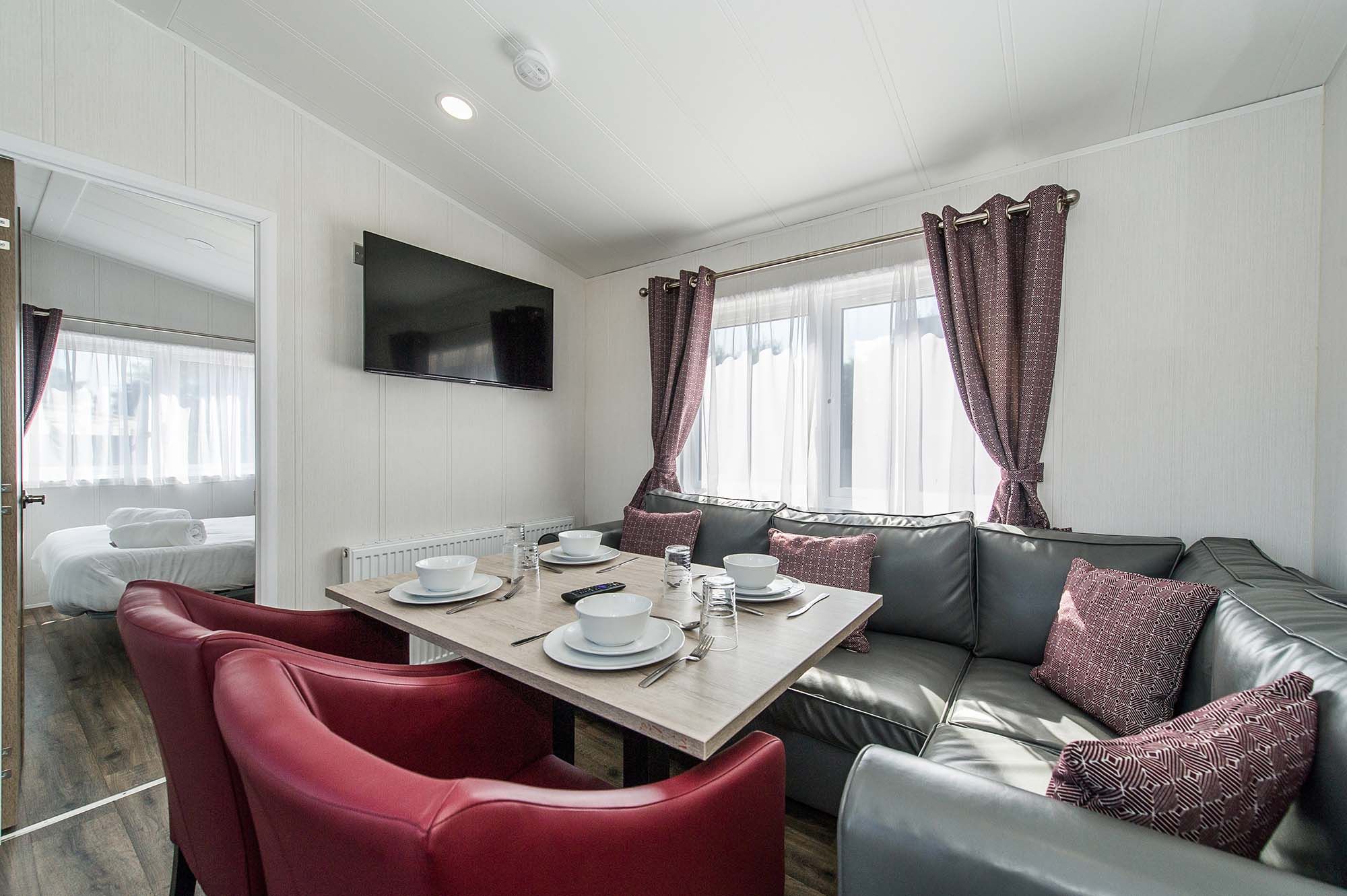 Brand new lodges with your very own Private Hot Tub, This lodge has a living area with sofa bed and dining table, full bathroom, 2 double be...