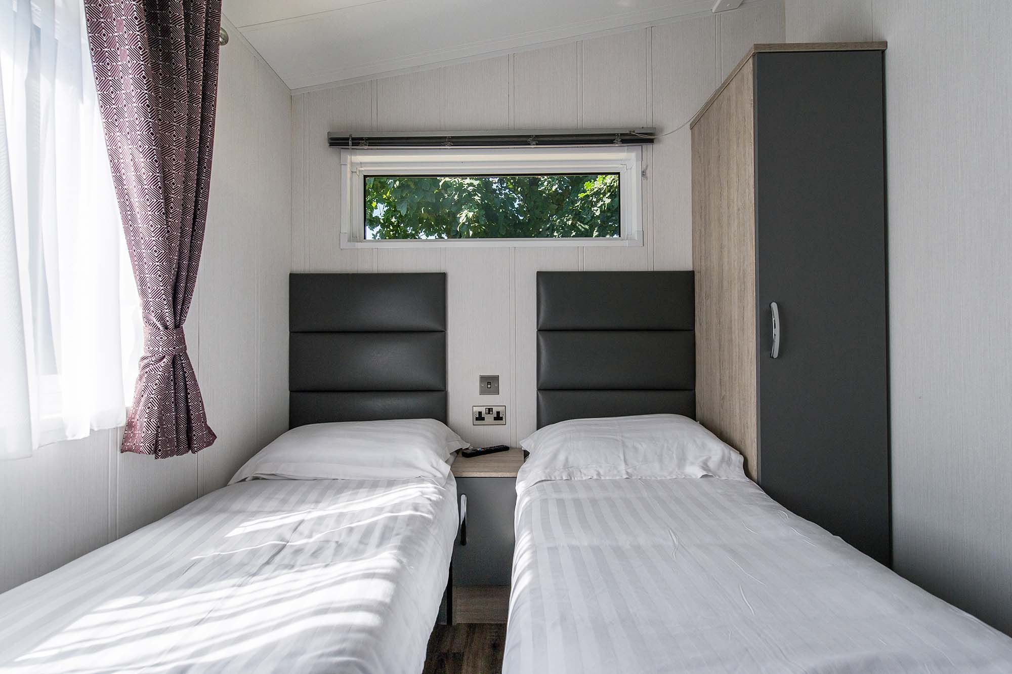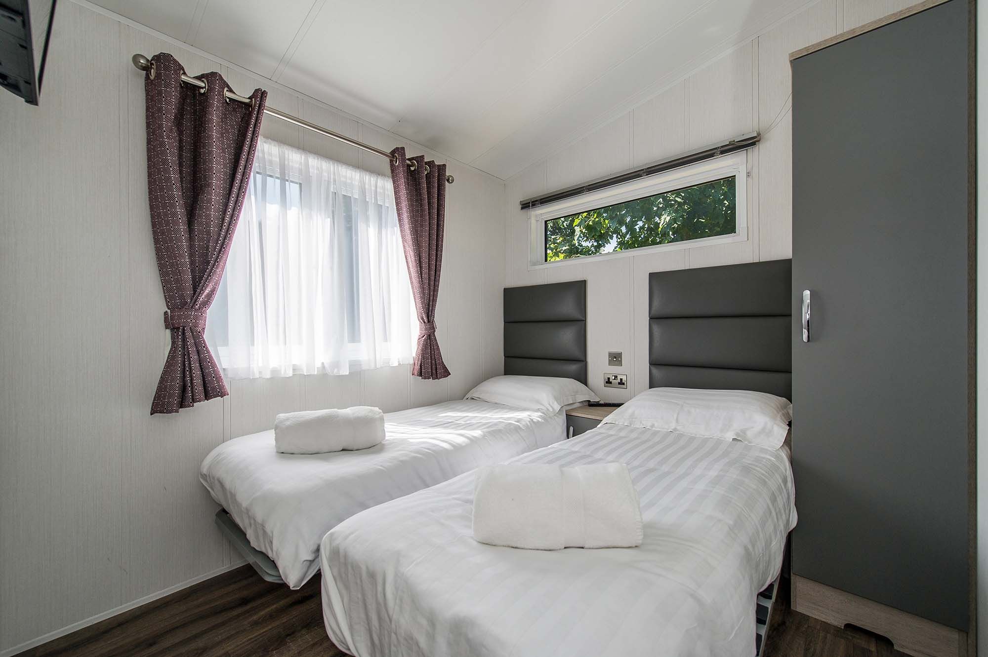 Brand new lodges with your very own Private Hot Tub, this dramatic bespoke designed black lodge redefines traditional holiday homes. With a unique centre lounge layout, the large double doors stream in natural light to give the lodge a wonderful bright feeling. Sleeping up to 6, this lodge has a living area with sofa bed and dining table, full bathroom, 2 single beds and one double bed.