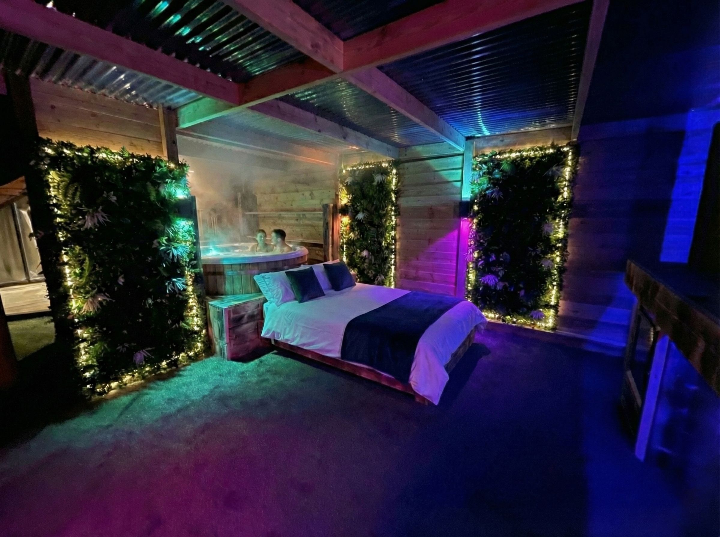Step out onto the spacious deck to experience the exclusive features of our secret retreat. Alongside a luxurious hot tub perfect for private relaxation, the deck boasts a massive 65" outdoor TV and a comfortable day bed, making it an ideal spot for outdoor entertainment and lounging. Featuring a beautifully enclosed garden adorned with lush foliage, the lodge offers a secluded outdoor space where luxury meets tranquillity.
