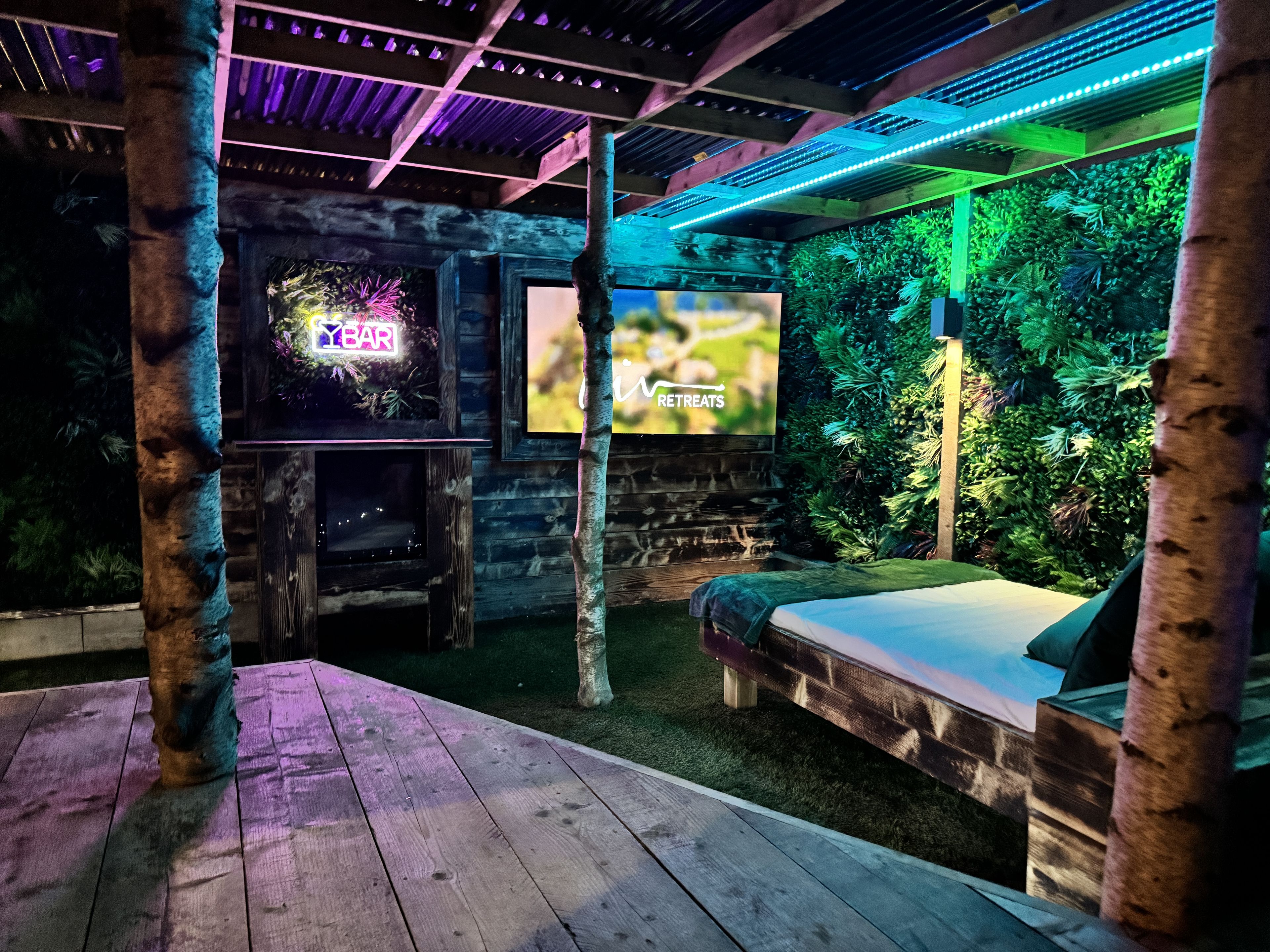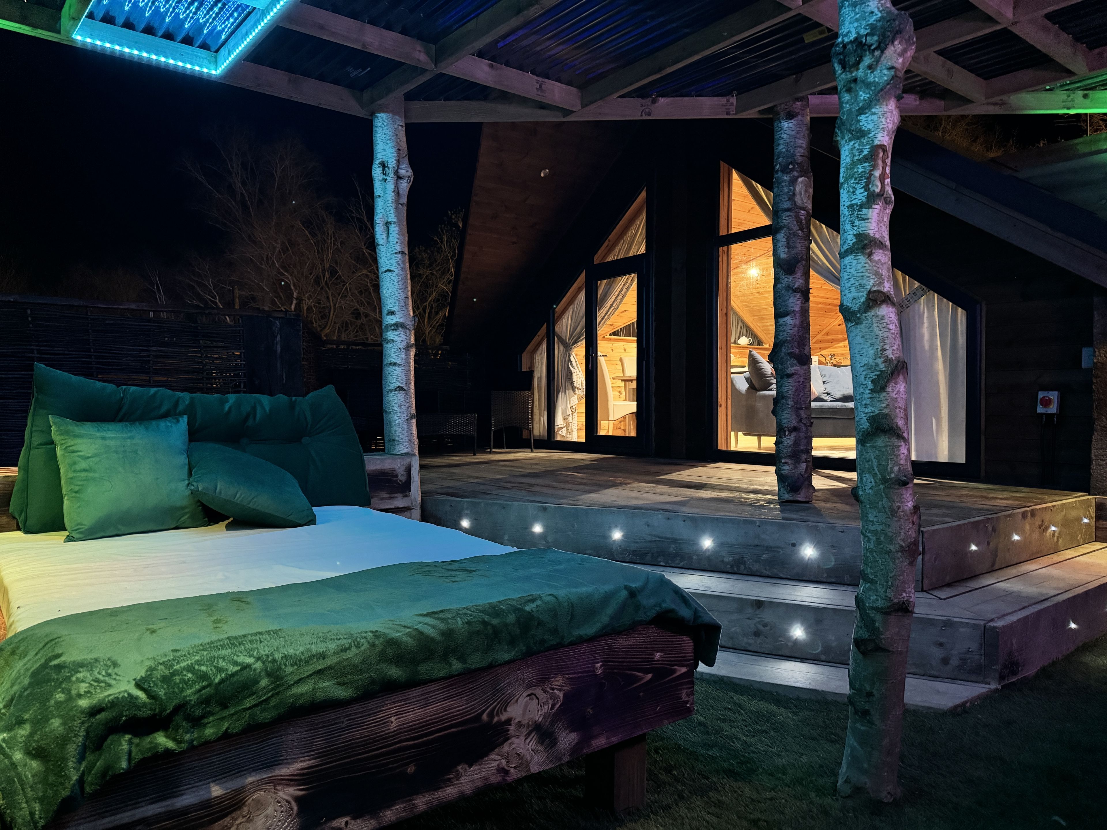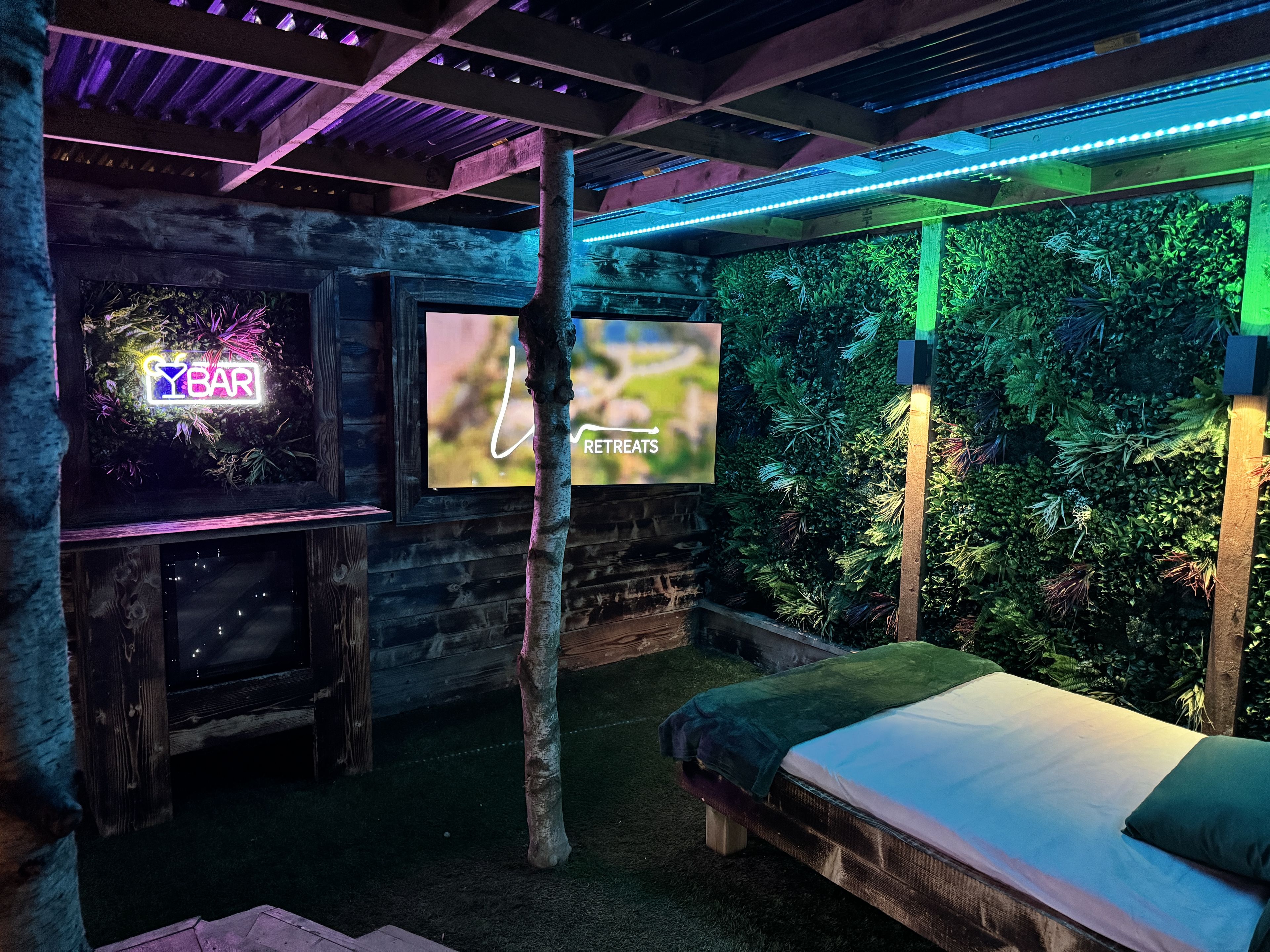 This lodge boasts a contemporary, fully-equipped kitchen, a master bedroom furnished with a cosy double bed, and a second bedroom that houses two single beds. Now a gem within our Secret Retreats collection, it has been enhanced further to include an enclosed garden area. This garden is adorned with exquisite tropical lighting and lush foliage, creating an enchanting ambience. Additionally, guests can enjoy an outdoor bar area, a day bed for ultimate relaxation, and a massive 65" TV, perfect for entertainment. This blend of modern amenities and serene outdoor space ensures a memorable stay for all guests.