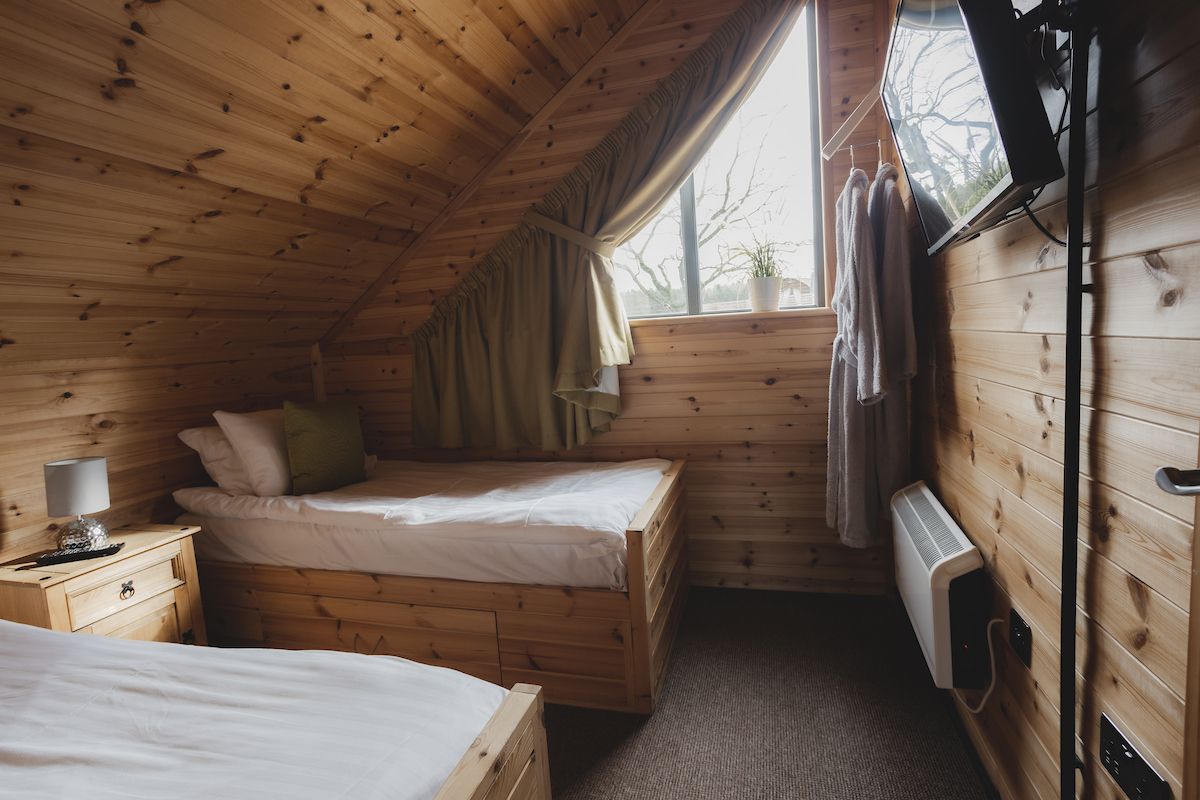 Set against the beautiful backdrop of the lake, our Willow Lakeside cabins comfortably accommodate six guests with two double rooms and a tw...