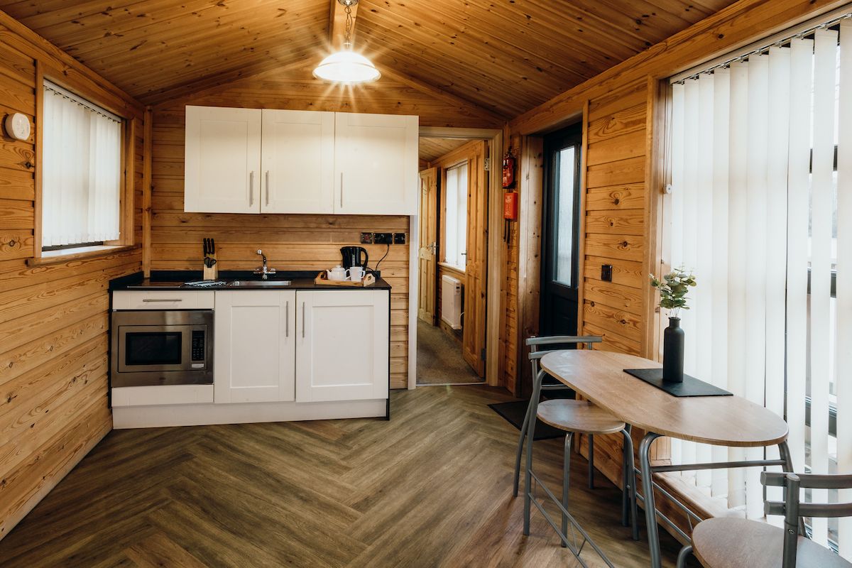 Nestled by the lakeside, our Larch XL cabin sleeps four comfortably with one double and one twin room. It offers a fully equipped kitchen co...