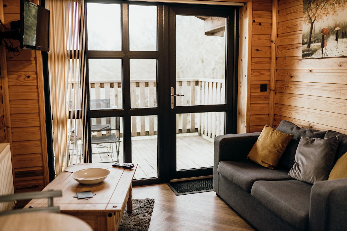 The Larch XL Park View Cabin, nestled amidst beautiful park views, accommodates up to three guests in one double and one twin bedroom...
