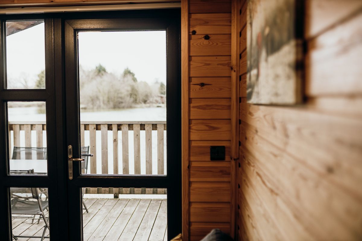 Nestled by the lakeside, our Larch XL cabin boasts its own hot tub and sleeps four comfortably with one double and one twin room.