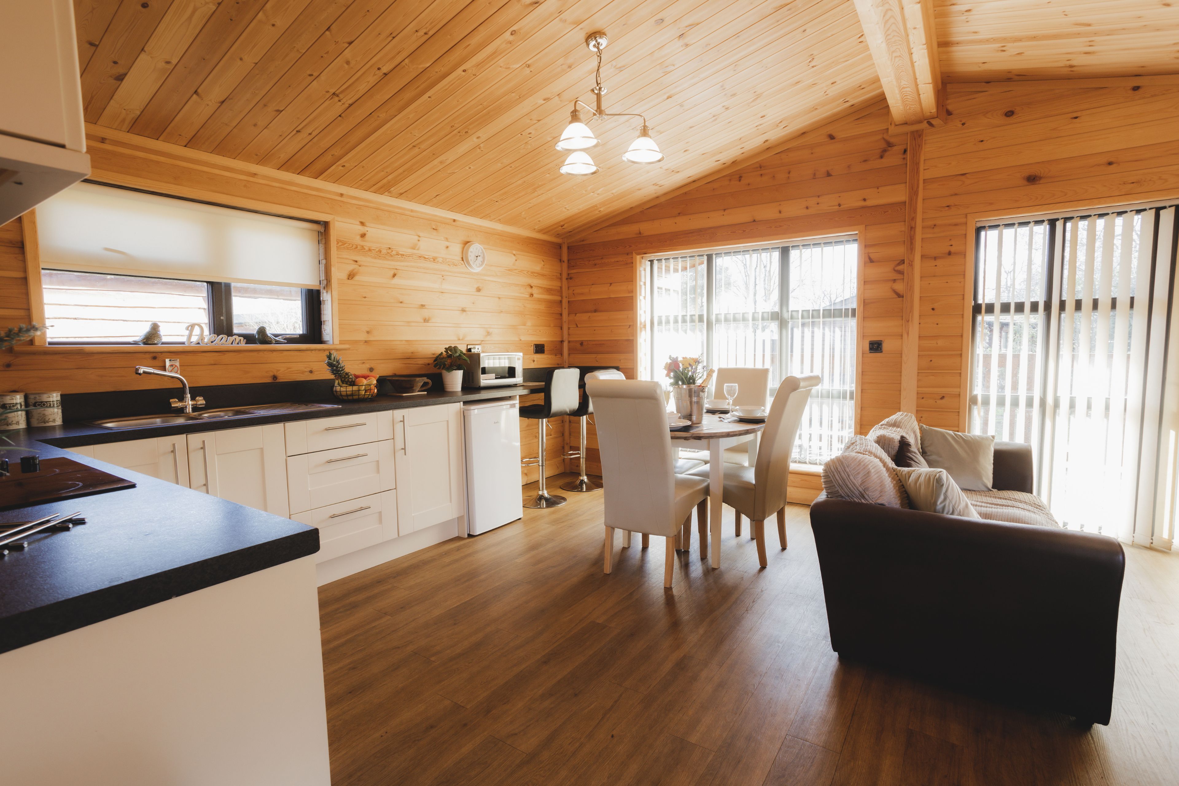 Nestled by the lakeside, our Larch XL cabin sleeps four comfortably with one double and one twin room. It offers a fully equipped kitchen co...