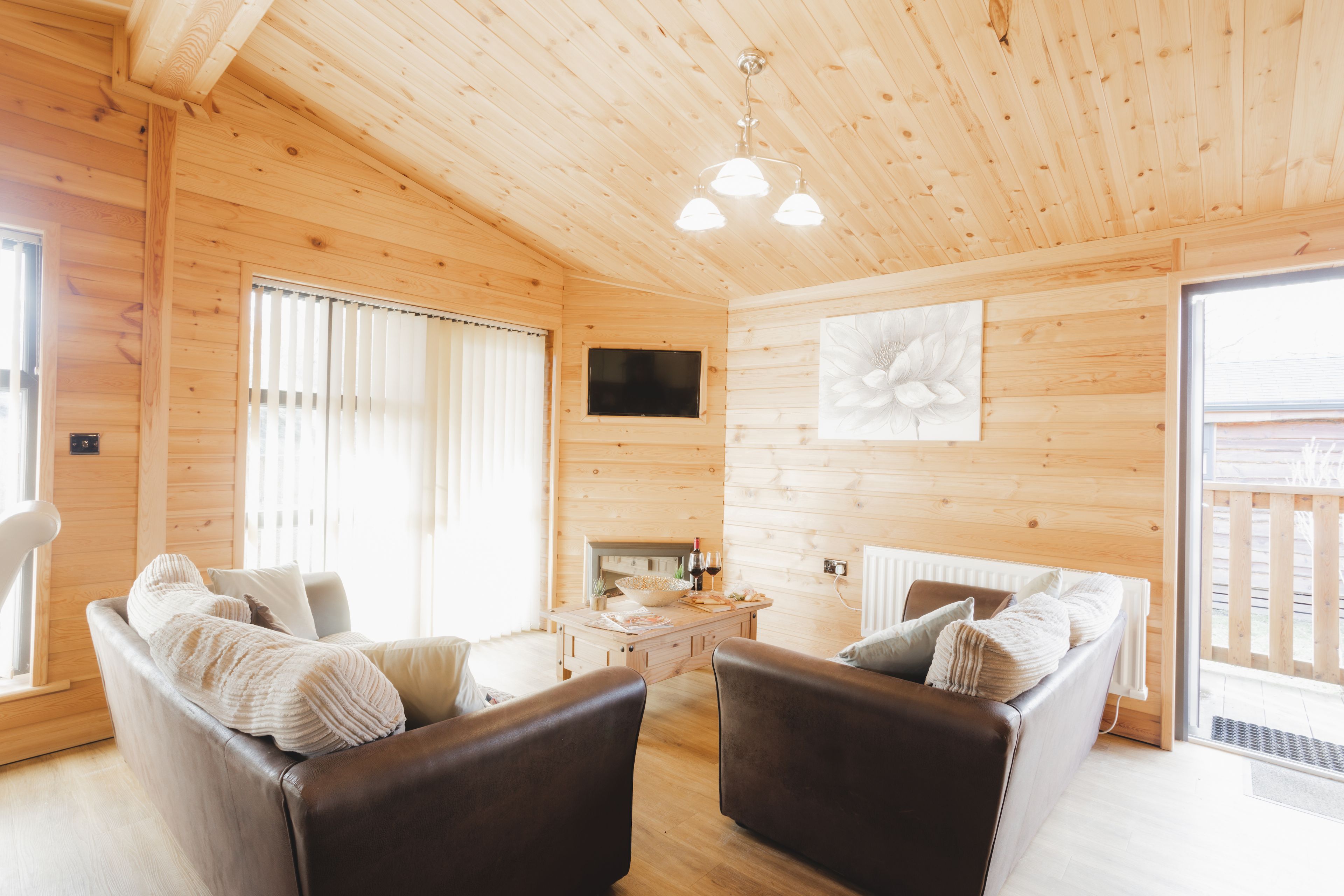 The Larch XL Park View Cabin, nestled amidst beautiful park views, accommodates up to three guests in one double and one twin bedroom...