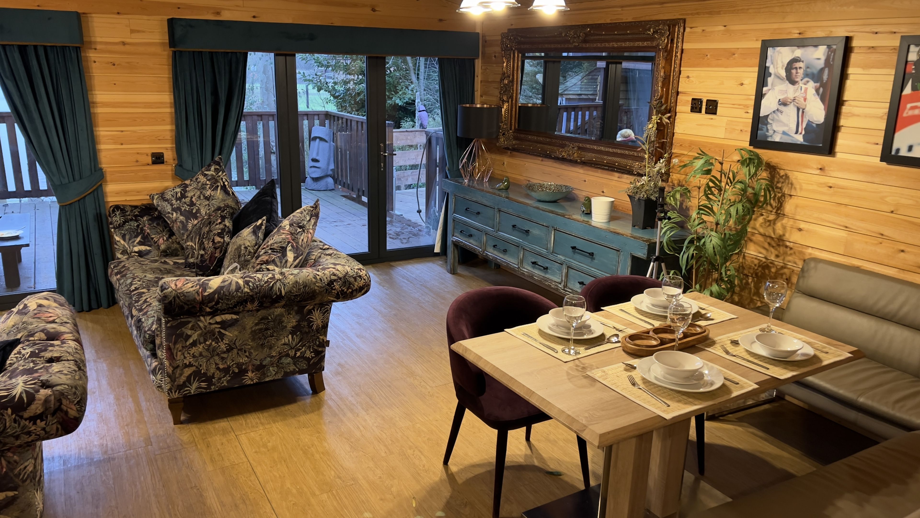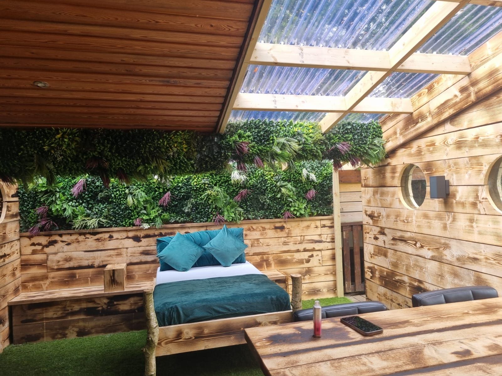 Now part of the exclusive Secret Retreats collection, this lodge offers luxurious amenities including an outdoor hot tub, a 65" garden TV, a stylish bar area, an outdoor day bed, and walls adorned with beautiful foliage. Treat yourself to a serene and unforgettable getaway—book today!